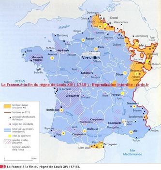 remarques: | Louis XIV et 20 millions de français la confrontation sans complaisance de Louis XIV avec son royaume prélude - Louis XIV a 22 ans en 1661 quand il prend le pouvoir et 76 ans en 1713, il assume alors la direction et la responsabilité de son royaume et gouverne avec ses ministres dont le grand Colbert prenant la place de Mazarin (la plus grand fortune de son temps) et de Fouquet - 3 fléaux durant son règne: peste, famine et guerre surtout dans les années 1662, 1694 et 1710, - 1/4 des nouveaux-nés n'atteignaient pas leur première année, la France était alors surtout peuplée de par la paysannerie - 18 millions de sujets, soit la population la plus forte du monde (après la Chine et les Indes), dont 15 millions de ruraux (plus qu'aujourd'hui), 30'000 villages, un peuple de paysans tondus par la triade vermoulue: noblesse, clergé et bourgeoisie - la période de stagnation en France en opposition à l'opulente Hollande (Provinces-Unies) mais la prospérité des grands financiers français appelés fermiers généraux qui rendaient toutefois service à l'état >> p. 27 les langues pratiquées en France, caractérisées par un provincialisme viscéral (les formes d'oc, le wallon-picard, le celtique, le flamand, le bas-allemand et le basque) >> p. 34 la religion en France - la situation en France à l'avènement de Louis XIV: 1/ signalement démographique l'espérance de vie moyenne était alors de 30 ans mais il naissait 40 enfants sur 1000 personnes (une naissance tous les 25 mois), en moyenne 5 enfants par ménage dont 2-3 atteignaient l'âge adulte 2/ signalement économique la bourse d'Amsterdam était alors le Wall Street de l'Europe, la flotte hollandaise (8000 navires) représentait la moitié de la flotte mondiale (Chine exceptée), Louis XIV et Colbert enviaient cette nation hollandaise très riche; la richesse de la France provenait de son terroir et du labeur multiple du paysan français, on exportait du blé, du sel, du vin et de la toilerie 3/ signalement social >> p. 62 l'énorme paysannerie, la masse la plus nombreuse qui subissait les droits seigneuriaux et qui ne conservait que la moitié de son revenu (après les taxes, impôts et autres charges); il y avait aussi une masse importante d'ouvriers urbains (le prolétariat); et en plus des trois classes: paysans, nobles et clergé, il y avait encore les bourgeois 4/ les cadres institutionnels qui rendaient possible l'existence de l'absolutisme royal, mais souvent les provinces avaient leur propre loi et autorité et nombres de cités avaient gardé leurs franchises (privilèges) et liberté (indépendance partielle), ils étaient les fidèles sujets du roi mais avec leurs privilèges et pas de justice uniforme >> p. 81 la vente des fonctions et offices deuxième partie: 1661-1679 le temps des hardiesses 1/ l'année 1661: le jeune roi à la recherche de la gloire >> p. 87 les mémoires du roi pour l'année 1661 (écrites en 1670 pour le dauphin) - Louis XIV était de petite taille (ce qui explique les hauts talons, la perruque et le maintien) mais d'une éclatante santé, infatigable, confiant et imbu de soi mais méfiant >> p. 91 la première tâche a été la refonte totale du gouvernement, il supprima complètement et définitivement la fonction de premier ministre il ne subsista que le Conseil d'En-Haut avec le roi et ses trois ministres (Le Tellier, marquis de Lionne et Fouquet, celui-ci remplacé peu après par Colbert) ainsi que le Conseil des Dépêches pour les nouvelles de province n.b. le Conseil d'En-Haut est le nom donné au Conseil d'État ou Conseil des Affaires, sous Louis XIV et Louis XV, il était appelé ainsi parce qu'il siégeait au premier étage du château de Versailles, à proximité de la chambre royale à l'origine, au Conseil d'En-Haut siègent les princes de sang, ducs et pairs, maréchaux de France, chancelier, contrôleur général des finances et ministres d'État Louis XIV en fait un conseil restreint où ne siègent qu'entre trois et six membres qui portent le titre de ministres d'État, l'accession au Conseil d'En-Haut est soumise à la décision royale; personne n'y entre de droit, les délibérations y sont secrètes et il n'est pas tenu de procès-verbal des réunions, le Conseil suit le roi dans tous ses déplacements sous le règne de Louis XIV, le Conseil d'En-Haut jouit d'une grande influence et généralement le roi se conforme aux avis qui y sont donnés >> p. 96 la répression par les armes de toute ombre de sédition était érigée dès la première année du règne grâce aux troupes que Louis XIV avait résolu d'entretenir en bon nombre malgré la paix en Europe, la préséance devait appartenir à la monarchie des lys, obsession de l'Espagne et sous-estimation de la riche Hollande >> p. 102 les relations de Louis XIV avec Dieu >> p. 105 au début, la politique religieuse de Louis XIV est plutôt tolérante, il désire toutefois voir peu à peu les huguenots revenir à la vraie foi 2/ 1661-1672, douze années de grandeur monarchique a) splendeur - jusqu'en 1672, la cour est essentiellement nomade se déplacant d'un château à l'autre, ce ne sont pas encore de grands journées de travail mais de la chasse et des divertissements (Molière) - début des arrangements du palais de Versailles 1/ avec Lebrun = décorateur du château de Versailles et notamment de la galerie des glaces 2/ avec Lenôtre pour l'aménagement du parc et des jardins du château de Versaille avec surtout les fontaines >>> à voir le système hydraulique pour amener les eaux et faire fonctionner les fontaines 3/ Arnold de Ville, un liégois, qui inventa la machine à Marly pour l'alimentation en eau >>p. 109 toutefois Louis XIV pense que les bâtiments ne suffisent pas à sa gloire; comme au temps d'Auguste, il faut que tous les arts, les lettres, les sciences concourent à exalter sa personne et son règne et tout naturellement dans l'ordre et l'obéissance - les différentes académies r