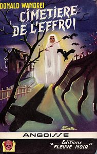 remarques: | cimetière de l'effroi (the web of Easter island), récit de 1948, no 1 de la collection Angoisse série commencée en 1954 et arrêtée en 1974, la série comprend 261 volumes, le dernier numéro 261 intitulé "le squelette de volupté" par Jean Ray, les couvertures sont pratiquement toutes signées M. Gourdon; collection à la tête de mort jusqu'au no 147 en 1967 "Madame Atomos croque le marmot" - un premier récit qui ne vaut pas par sa qualité la valeur côtée pour ce premier volume - une mystérieuse statuette verte, découverte dans le cimetière d'Isling, le cimetière du diable et de l'effroi, en Galles du Sud près de Stonehenge, semble à l'origine de morts inexplicables autant qu'horribles: le petit Willy Grant, ses parents, puis un accident ferroviaire, une catastrophe en mer, encore des morts, toujours des morts annonçant un cataclysme imminent, le retour d'entités terrifiantes - la malédiction de la statuette verte en quelque rapport avec Stonehenge, Angkor, l'île de Pâques et le grand cadran d'or de Nyamba (n.b. un cadran d'or inconnu) - découverte d'ossements de squelettes de Cro Magnon et de Néanderthal dans le souterrain du cimetière mais les visiteurs se font désintégrer par une mystérieuse plaque qui en contrôle l'entrée l'aventure commence pour Carter Graham, archéologue et anthropologue, habitué aux hauts lieux du mystère et de l'inconnu, son enquête le conduira de Stonehenge à la légendaire Ile de Pâques, cimetière d'anciens dieux où se déroule la conclusion de l'énigme, plongé au cœur de l'épouvante, il fait alors un prodigieux bond dans le futur, dans un véhicule extra-terrestre, victime d'un diabolique piège temporel... >> p. 147 les commentaires de Graham - "ce chaos dénué de sens qu'est la vie" - "plus je lisais moins je savais" >> une affaire de gardien des sceaux, du peuple des titans et autres secrets qui resteront quelque peu en suspend >> la première partie du livre n'est pas très angoissante et même monotone, seule la deuxième partie qui se réfère à Lovecraft et qui se base sur la monstrueuse entité cosmique de Cthulhu est quelque peu d'intérêt mais qui n'a plus grand rapport avec un cimetière d'effroi, une deuxième partie genre poésie cosmique, mais qui n'atteint pas des sommets d'horreur; quoique placé sous le signe de l’inspiration de Lovecraft, cette 2ème partie offre d'indéniables qualités romanesques avec quelque mystère mais rien de spectaculaire sur la route des mythes éternels et des vertiges néanmoins la couverture du livre est bien exécutée n.b. ce récit a été édité dans plusieurs collections dont Marabout fantastique et la collection NEO Oswald ainsi que dans horror story |