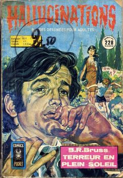 remarques: | terreur en plein soleil, no 38 en forme de récit et de journal intime n.b. curieusement, ce livre ne porte pas sur son dos l'insigne de la tête de mort 1/ le journal de Patrice Solier un quatuor bien uni, Patrice en couple avec Catherine, la soeur de son ami Robert, lui-même en couple avec Lucie, la soeur de Patrice >> p. 42 le secret qui rend Robert anxieux le secret de Robert qui entend une voix responsable de ses actes qui le fait devenir un criminel, il sera arrêté par la police, mais décède peu après d'une mort violente la folie commence aussi à s'emparer de Patrice sous la même forme que Robert, Patrice est la victime d'une puissance mentale diabolique qui le contrôle et lui fait faire des choses contraires à sa morale, une personne étrangère à Patrice a prit le contrôle de son cerveau >> p. 137 la torture de la scie dans le cerveau >> p. 140 fin du journal intime de Patrice après qu'il soit décédé aussi de mort violente 2/ Léon Surf croit à l'incroyable à Paris, le nombre de suicides est en constante augmentation et le policier Léon Surf, un ami de Patrice commence à croire à un esprit maléfique qui prend le contrôle de certaines personnes, lui-même heureusement est réfractaire à ce genre de contrôle mental et il mène son enquête personnel 3/ le journal intime du monstre c'est le journal de la méchanceté à l'état absolu et ce personnage est une femme et non un homme, en une demi-heure, elle peut prendre le contrôle d'une cinquantaine de personnes et son intermédiaire est un homme que Patrice avait qualifié de petit homme gris dans son cerveau 4/ le monstre déchaîné dans son enquête, Léon a suivi l'homme gris soupçonné d'avoir pris part au suicide de la victime du monstre et Léon a découvert que Catherine, l'amie de Patrice, vivait avec l'homme gris et Léon a la preuve du pouvoir maléfique du monstre en découvrant lors d'une perquisition le journal intime de Catherine il n'y aura qu'une solution pour terminer ces actes maléfiques, prendre les deux créatures par surprise en utilisant des agents réfractaires aux ondes mentales et abattre les deux monstres sans pitié >> beaucoup de journeaux intimes dans ce récit avec une description cruelle de la méchanceté, mais un récit angoissant d'une grande originalité et qui tient le lecteur en suspense du début à la fin, cette fois Bruss a bien mérité son prix d'angoisse annexes - couverture fleuve noir - couverture Aredit, série hallucinations n.b. curieusement, le dos du livre ne montre pas le signe de la tête de mort |