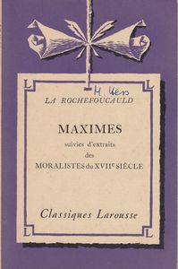 remarques: | maximes suivies d'extraits des moralistes du XVIIème siècle |