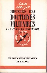 remarques: | histoire de l'art et des doctrines de la guerre depuis l'Antiquité-Moyen Age-Renaissance-Empire et Temps Modernes le plus ancien ouvrage sur l'art de la guerre est celui de Sun Tse (500BC) "les règles de l'art militaire" puis il y eut Alexandre et la phalange, César et les légions, la Chevalerie, Gustave-Adolphe, Frederic II, Napoleon, Clausewitz, Guderian >>> un petit livre peut'être déjà dépassé mais restant toujours intéressant et très explicite |