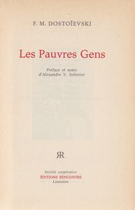 remarques: | les pauvres gens et autres oeuvres littéraires de Dostoïevski: - le double - roman en neuf lettres - Prohartchine - la logeuse - un coeur faible - le bouffon (Polzounkov) - l'honnête voleur - l'arbre de Noël et le mariage - la femme d'un autre et un mari sous le lit |