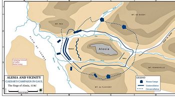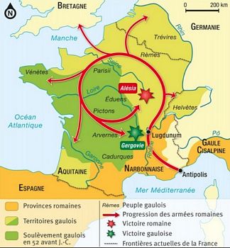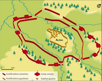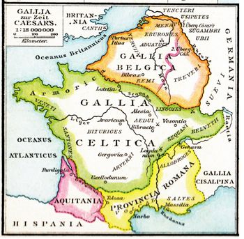 remarques: | 7ème volume de la série (54 à 52 B.C.), curieusement cet album ne fait pas officiellement partie de la série des maîtres de Rome, assez difficile à trouver et si disponible, on en demande un prix de Euros 80.- en neuf (titre original: Caesar, Gaul's conquest) A/ César en Britannie 54 B.C. - à son camp de base près de Londinum (la Tamesa = la Tamise), lors de sa 2ème expédition, César reçoit un message de Pompée >> p. 30 description de César en présence de Faberius, son secrétaire et de Hirtius, son historien, César prend connaissance du message de Pompée, César apprend la mort de Catule et le périple de Crassus en Syrie, mais surtout César apprend avec tristesse la mort de sa fille Julia, mariée à Pompée, morte en couches, Julia était âgée de 22 ans (Pompée en a 52 et César 46), César prend le deuil de sa fille en décidant de ne plus se raser, il décide de retourner en Gaule et éventuellement à Rome, car par la mort de Julia, son alliance avec Pompée devient menacée - auparavant César s'empare de la forteresse de Cassivellaunos, roi des Casses et oblige celui-ci à signer un traité de paix et à lui remettre des otages >> p. 46 description des chars de combat utilisés par les bretons - César part avec sa flotte de 700 navires et après 6 heures de navigation arrive à Portus Itius >> p. 51 quand les romains se battaient au corps à corps, grâce au gladius et au bouclier, l'adversaire se faisait tailler en pièces B/ la Gaule Chevelue (54 à 53 B.C.) - César organise les quartiers d'hiver pour ses 8 légions de Gaule: - XIIIème à Atuatuca (Eburons) avec Sabinus/Cotta - IXème près de la Mosa chez les Nerviens avec Quintus Ciceron - Xème et XIIème à Samarobriva (Amiens) chez les Ambiens avec Trebonius et César - VIIIème chez les Bellovaques avec Marcus Crassus - VIIème à Portus Itius chez les Morins avec Fabius - Vème chez les Esubiens avec Roscius - XIème + la cavalerie à Virodunum chez les Rèmes avec Labienus n.b. la Xème légion était la favorite de César n.b. la capacité de César pour écrire, il gardait toujours contact avec Rome grâce à ses courriers qui parcouraient 50 miles par jour (800 miles de Rome à Portus Itius) >> p. 62 César pouvait dicter à trois secrétaires à la fois sans commettre d'erreurs - Caton était le demi-frère de Servilia, maîtresse de César et donc l'oncle de Brutus qui venait d'épouser Claudia, fille de Claudius et l'autre fille de Claudius, Claudilla, venait d'épouser Pompée à la place de la défunte Julia, fille de César - Atia, cousine de César et son fils Octavius, âgé de 9 ans, qui était le petit-neveu de César - César lit encore les lettres de Servilia et de sa femme Calpurnia qui lui apprend que Aurelia, mère de César, est aussi décédée de tristesse suite à la mort de Julia >> p. 76 il n'y a rien de plus laid qu'un oppidum gaulois nomenclature - la Mosa = la Meuse - Samarobriva = Amiens - Nemetocenna = Arras - Durocortorum = Reims - Agedincum, cité des Senons = Sens - Arausio = Orange en Provence - Vesontio = Besançon - Matisco = Mâcon - les Cimbres = peuple germanique du nord de l'Allemagne près de la frontière du Danemark - Serica = pays des Sères = la Chine toutefois il faut comprendre que les pouvoirs romain et chinois sont avant tout des pouvoirs lointains et imaginés par les uns et les autres - hortator = chef des rameurs qui dirigeait leurs mouvements en cadence, soit par des cris, soit par des chants - thane = titre de noblesse attribué aux chefs de la Britannie - hercynien ou varisque = chaîne de montagnes qui s'étendait au sud de l'Allemagne et où l'élan des légions s'y trouva brisé - grécité = caractère de ce qui est grec - à Samarobriva, César retrouve Rhiannon, sa maîtresse aux cheveux roux, fille du roi assassiné des Helvètes, ainsi que Orgétorix, fils bâtard de César; Rhiannon avait été l'épouse de Dumnorix qui l'avait répudiée suite à la défaite des Helvètes n.b. Rhiannon, maîtresse gauloise de César, n'est pas confirmée par les historiens - les Eduens étaient les meilleurs alliés gaulois de César, ils étaient aussi les plus riches et les plus romanisés, les Carnutes à Cénabum commencent à s'agiter >> p. 88 entretien de César avec Cathbad, le druide gutuater carnute, César interdit les sacrifices humains perpétués par certains druides >> p. 88 description des druides gaulois - révolte des Eburons soulevés par Ambiorix qui réussit à massacrer la XIIIème légion de Sabinus/Cotta et après coup, Ambiorix et ses troupes mettent le siège au camp de Quintus Ciceron qui envoie des demandes d'aide à César; César arrive avec deux légions et met les troupes d'Ambiorix en fuite >> p. 119 description d'un camp romain, la valeur de Labienus, craint de ses hommes - César veut maintenant lever 3 légions supplémentaires pour la Gaule (il n'en a plus que 7) tandis que Ambiorix et Indutiomar regroupent leurs troupes - Rhiannon aimerait que César, qui n'a pas de fils, reconnaisse Orgetorix comme son fils mais César refuse n.b. ce qu'il ne fera pas avec Cléopâtre, toutefois il ne le fera pas romain, mais à cette époque César n'avait pas encore eu de contact avec Cléopâtre et l'Egypte, César avait toutefois déjà eu une fille Julia, de son premier mariage avec Cornelia Cinna, mariée avec Pompée et décédée en 54 BC, une autre fille aurait été conçue ou adaptée: Junia Tertia (en 47 BC, la rumeur veut que sa mère Servilia l'ait prostituée à Jules César, bien qu'il ait également été dit qu'elle était la fille de César dont sa mère était la maîtresse) - au printemps 51 BC, César lance une offensive sur les Nerviens et les décime >> p. 128 les 3 plus puissants peuples de la Gaule: les Trevires, les Sénones et les Carnutes, première manifestation de Vercingetorix à la réunion des délégués gaulois >> p. 137 description de Vercingetorix et >> p. 138 sa discussion avec