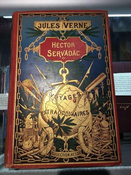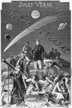 remarques: | Hector Servadac voyages et aventures à travers le monde solaire - dans la région de la Méditerranée, un cataclysme s'abat sur la planète qui modifie les lois de la pesanteur sur terre, Hector Servadac et ses compagnons sont transportés sur une portion terrestre détachée qui fait fonction de vaisseau spatial >> p. 142 la rencontre entre la vivacité française et le phlegme britannique - on constate que la goélette Dobryna navigue sur un astéroïde que nos amis appeleront Gallia, ils deviendront alors des galliens >> p. 159 la périhélie = point de l'orbite d'une planète qui est le plus proche du Soleil (contraire = aphélie) - en débarquant sur une portion de la Provence devenue une île, nos amis constatent que la France n'existe plus - orbe fracto spes illaesa (sur des espoirs brisés intacts) >> p. 212 un juif qu'il s'exprime en français, russe, italien ou anglais, c'est toujours argent qu'il parle - sur leur astéroïde, contre le froid qui empirait, un volcan avec ses cavernes chauffées, leur procura un bon abri pour l'hivernage sur Gallia, on appellera cet endroit Terre Chaude >> p. 302 description d'une comète en 1874 = un astre chevelu >> p. 306 la comète Halley ist la plus anciennement connue, selon Verne, il y a deux cent quatre-vingt-un millions de chances (boules noires) contre une (boule blanche) qu'une collision entre la terre et une comète ne s'effectuera pas, sans doute déclara le prof. Rosette, mais nous avons tiré la boule blanche - l'évolution de la comète allait durer deux ans avant de rejoindre celle de la terre >> p. 346 le volume de la terre: un trillion quatre-vingt-deux milliards et un million de kilomètres cubes >> p. 382 et son poids: cinq mille huit cent soixante-quinze sextillions de kilogrammes (= un nombre de 25 chiffres) - le prof. Rosette appelle maintenant les habitants de la terre les terrestriens - la comète Gallia allait bientôt rejoindre l'attraction de la terre, pour faciliter l'atterrissage, les galliens construisent un ballon dirigeable pouvant contenir une trentaine de personnes (voir l'illustration en annexe) >> p. 525 ils revenaient presque à l'endroit d'où ils étaient partis après un voyage de deux ans à travers le monde solaire, toutefois la comète ne s'écrasera pas sur la terre comme prévu, mais la frôlera en continuant son périple dans l'espace et sur la terre personne n'avait jamais constaté l'existence de cette comète - outre aux nombreuses explications scientifiques (assez bien formulées pour l'époque), le récit contient souvent des descriptions de relations humaines tel entre le capitaine Hector Servadac et son ordonnance algérien Ben-Zouf ainsi que la rencontre avec deux officiers anglais et les pourparlers avec le juif Isac Hakhabut teinté d'antisémitisme - et qui sait si tout cela n'avait été qu'un rêve s'exclama Servadac à la fin du récit n.b. le peson est un dynamomètre quand il est mécanique, c'est donc un appareil qui mesure des forces tel le poids, il est généralement constitué d'un ressort dont on mesure l'allongement grâce à une réglette se déplaçant sur une échelle >>> un roman moins spectaculaire que l'île mystérieuse ou de la terre à la lune mais assez scientifique (pour l'époque) et plutôt fantaisiste avec des débuts de science-fiction et peut'être aussi de nombreuses balivernes (propos sans grand intérêt) annexes - diverses couvertures et illustrations du roman Information - il s'agit d'un roman tout à fait fantaisiste où l'auteur extrapole à partir d'une hypothèse la rencontre de la terre avec une comète et ses conséquences à la fois les plus inattendues et les plus rigoureusement logiques de la situation ainsi créée - c'est l'un des ouvrages les plus drôles et hallucinés de Jules Verne - les Galliens (terriens temporairement expatriés sur la comète Gallia, nom donné par son inventeur le professeur Palmyrin Rosette) subissent une diminution de l'attraction terrestre, voient un satellite s'accrocher à leur planète ou encore les journées raccourcir (de 24 à 6 heures), les années se modifier, le calendrier gallien supplanter le grégorien, etc - en raison des hypothèses astronomiques qu'il suppose connues, ce roman est davantage destiné à un public adulte, même si les morceaux de bravoure des deux héros, le capitaine et son ordonnance, bondissant à cause de la légèreté de leurs montures à travers les paysages de Gallia, donnent un ton léger au récit et abordable pour un lectorat plus jeune - Hector Servadac et quelques terrestres se retrouvent sur une comète après que celle ci eut frôlé la terre, lui arrachant au passage une portion terrestre de la planète avec de l'atmosphère, de l'eau, une gravité plus légère, etc - ils entreprennent alors un long voyage de deux ans dans le système solaire, beaucoup de personnalités différentes vont ainsi cohabiter et faire ressortir les défauts négatifs et positifs de la nature humaine - roman atypique qui ouvre une nouvelle dimension de science fiction en 1874 |