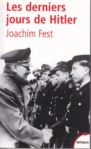 remarques: | titre original: der Untergang Hitlers und das Ende des Dritten Reiches la chute de Berlin équivalait à la chute de Carthage (Harry Hopkins dixit) et Hitler faisait tout pour entraîner son peuple dans sa chute (19.3.45 l'ordre de destruction d'Hitler qui savait déjà fin 1941 qu'il ne pourrait gagner la guerre) 1) la grande bataille commence le 16.4.45 sur l'Oder, Staline déclanche son offensive finale menée par Joukov avec 2,5 mio d'hommes et 3000 pièces d'artillerie, trop sûr d'eux, les soviets sont repoussés par l'armée Weichsel du général Heinrici, il fait tenir ou mourir, entretemps Koniev fait sa jonction avec les américians sur l'Elbe; pour les alliés, Berlin n'était plus un objectif militaire, c'était l'affaire des sovietiques >> p. 30 description du Führerbunker à 10 m sous terre >> p. 37 l'apparence physique d'Hitler était terrifiante au commandement allemand à Berlin, c'était le chaos 2) conséquence ou catastrophe: Hitler dans l'histoire de l'Allemagne, la personnalité charismatique d'Hitler, le ferment idéologique, la conquête de l'espace vital à l'est 3) la guerre est perdue 20.4.45 56ème anniversaire du Führer, le code "Clausewitz" = état d'alerte décrété sur Berlin >> p. 77 le fameux groupe Steiner qui n'existait plus >> p. 83 le 23.4. crise de rage sans précédent par Hitler qui déclare qu'il se donnera la mort, puis "faites comme il vous plaira" 4) ultimes résolutions le 24.4. Speer prend congé d'Hitler après lui avoir dit qu'il n'avait pas exécuté ses ordres de destruction >> p. 96 les raisons de la résistance fanatique des allemands à Berlin >> p.101 le testament politique d'Hitler 5) le banquet de la mort le 26.4. Joukov et Koniev effectuent leur jonction, Berlin était encerclée, dernière visite de von Greim et Hanna Reitsch chez Hitler, ceux-ci peuvent s'échapper avec un Arado 96 de reconnaissance, vague de suicide parmi les hauts-gradés allemands, trahison de Himmler, Hitler fait exécuter Fegelein, assistant de Himmler, à titre de représailles, ensuite il nomme Doenitz comme son successeur, matin du 30.4. mariage de guerre entre Hitler et Eva Braun, 30.4. 12.00 heures dernier repas d'Hitler = banquet funèbre, en fin d'après-midi Hitler et Eva Braun se donnent la mort 6) la volonté de disparaître volonté de destruction par Hitler qui était né pour la guerre 7) capitulations après la mort d'Hitler, Krebs négotie la capitulation avec Tchuikov à Tempelhof, Goebbels se donne la mort avec sa femme et ses 6 enfants la bataille de Berlin causa la mort de 300'000 soviétiques et 40'000 allemands, 500'000 allemands furent faits prisonniers, Staline fit courir le bruit que Hitler avait réussit à s'échapper (Argentine, Japon), >> p. 192 l'opération "archives", mise en place un peu plus tard, retrouvera des fragments de la dentition d'Hitler et un bridge de la mâchoire d'Eva Braun 8) la fin d'un monde la disparition d'Hitler lui valut une étrange survie dans l'histoire >> un petit livre très bien conçu qui a donné naissance au film "der Untergang", le récit est captivant, une étude d'Hitler dans ses derniers retranchements avec une description intéressante sur la bataille finale à Berlin. n.b. il y eut de nombreuses versions divergentes sur la mort de Hitler, mais au fond cela n'a aucune grande importance >>>>voir aussi le livre "les hommes du bunker" |