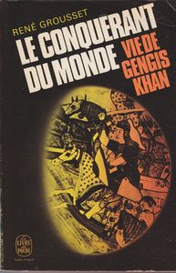 remarques: | vie de Gengis Khan, le conquérant du monde une biographie plutôt géographique que historique, mais en partie assez intéressante, Grousset a aussi été l'auteur du livre "l'empire des steppes" (1969) qui parle d'Attila, Gengis Khan et Tamerlan, mais un livre encore plus ardu à la lecture, Gengis Khan, un grand conquérant, mais qui élevait des pyramides avec les têtes décapitées de ses victimes et qui anéantira l'ancien royaume de Khwarezm (Iran, destruction des cités de Boukhara, Samarcande et Ourguentch) n.b. l’assaut sur Ourguentch s’avéra être la bataille la plus difficile de l’invasion mongole livre à comparer avec l'excellent série de bande dessinée: le Khan par Houot+Rocca, 5 volumes Soleil 1994-1999 Information Gengis Khan: Chingis Khaan, littéralement "souverain universel", d'abord nommé Temüdjin, né vers 1155/1162, dans ce qui correspond à l'actuelle province de Khentii en Mongolie, mort en août 1227 dans l'actuel Xian de Qingshui (Chine), est le fondateur de l'Empire mongol, le plus vaste empire continu de tous les temps, estimé lors de son extension maximale à 33,2 millions de km2 en 1268 sous Kubilai Khan. Issu d'un chef de clan de la tribu Bordjigin, il utilise son génie politique et militaire pour rassembler plusieurs tribus nomades de l'Asie de l'Est et de l'Asie centrale sous l'identité commune de "mongoles"; il en devient le khan (dirigeant), puis le Tchingis Khagan (empereur ou chef suprême), avant même de se lancer à la conquête de la Chine, à la fin de son règne, il contrôle une grande partie de l'Asie, avec, outre la Mongolie, la Chine du nord et la Sogdiane. Après sa mort, l'empire est considérablement agrandi par ses successeurs qui le dirigent encore pendant plus de 150 ans, son petit-fils, Kubilaï Khan, est le premier empereur de la dynastie Yuan en Chine. pour les Mongols, qui le considèrent comme le père de leur nation, Gengis Khan est une figure légendaire entourée d'un grand respect, mais, dans nombre de régions d'Asie ravagées par ses guerres ou celles de ses successeurs, il est considéré comme un conquérant impitoyable et sanguinaire Il a établi des lois en faveur des femmes, pour éviter les conflits entre tribus. ainsi, l'interdiction d'enlever des femmes, de les vendre à des époux et l'interdiction de l'adultère sont les principes de son empire |