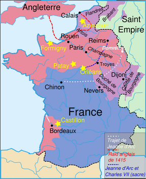 remarques: | Jeanne d'Arc première partie 1/ l'Angleterre, l'Etat, l'Eglise l'étroite union de la royauté et de l'Eglise d'Angleterre sous la maison des Lancastre, l'Eglise comme grand propriétaire, élévation des Lancastre: Henry IV, Henry V, persécution des hérétiques 1414-1415 danger du roi et de l'église, 16 avril 1415, Henry V se prépare à envahir la France 14.8-22.9.1415 Henry V débarque à Harfleur, Harfleur, premier port sur la Seine, se rend à Henry V, Henry V entreprend d'aller d'Harfleur à Calais 19.10. il parvient à passer la Somme 25.10. bataille d'Azincourt, description de la bataille captivité en Angleterre de Charles d'Orléans, cousin du Dauphin n.b. le roi Charles VI eut 12 enfants, le futur Charles VII fut le 11ème, tous ses frères décédèrent mystérieusement, deux peut'être empoisonnés par les Armagnacs car ces 2 frères prenaient parti pour les bourguignons Louis d'Orléans, frère de Charles VI, fut assassiné par Jean-Sans-Peur et son fils Charles d'Orléans, prisonnier à Azincourt, resta captif en Angleterre durant près de 25 ans et lors de laquelle Charles d'Orléans écrivit de nombreux poèmes et ballades ce qui causera l'apparition de Jeanne d'Arc, c'est l'état de désolation qui règne en France avec le traité monstrueux de Troyes (1420) passé entre le roi-fou Charles VI et Henry, roi d'Angleterre qui marié à Catherine de France deviendra à la mort de Charles VI, roi de France et d'Angleterre, pour le moment, il en est le Régent et condamne le dauphin, futur Charles VII, au bannissement n.b. de plus la France est déchirée entre Armagnacs et Bourguignons, Bernard VII d'Armagnac soutenait la maison d'Orléans opposée à la maison de Bourgogne, il est nommé à Paris connétable et chef du gouvernement du dauphin, il est assassiné lors de la conquête de Paris par les Bourguignons de Jean Sans Peur et celui-ci fut à son tour assassiné, peut'être sur l'instigation de Charles d'Orléans, fils de Louis, lors de l'entrevue de Jean Sans Peur avec le dauphin sur le pont de Montereau (1419) ou alors la mort de Jean-Sans-Peur est le fruit du hasard (querelle entre armagnacs et bourguignons); son fils Philippe le Bon lui succède, il veut avec la veuve de Jean (Marguerite de Bavière) venger son père malgré que sa femme, Michelle de France est la soeur du Dauphin 2/ mort du connétable d'Armagnac, mort du duc de Bourgogne, Henri V 1416-1421 reprise de Paris par les Bourguignons (1418), le connétable d'Armagnac est exécuté, fuite du dauphin, Henry V s'empare de Caen et de Rouen et entre à Paris en 1420 3/ Concile de Constance (1414-1418), description du Concile, de Jean Huss et de Jean Gerson, Henry V était devenu le vrai chef de la Chrétienté mais la détresse et les embarras financiers causent quelque découragement à Henry V, en outre il perd une bataille en Anjou où son frère Thomas de Lancastre, duc de Clarence trouve la mort, malade de dysenterie, mort d'Henry V le 31.8.1422 suivit de celle de Charles VI le 31.10.1422, il n'aura fallu que de 2 mois avant que Henry V ne soit devenu roi de France et d'Angleterre, deux rois règnent maintenant sur la France: le dauphin Charles VII et le petit roi Henry VI n.b anecdote: lors de sa naissance, Henry V aurait déclaré "Henry de Monmouth (principauté de Galles) aura règné peu et conquis beaucoup Henry de Windsor règnera longtemps et il perdra tout" Henry VI a 2 ans quand son père meurt, il réside alors à Windsor sous la protection de Jean de Lancastre, duc de Bedford, régent de France et durant sont absence ce sera Humphrey de Lancastre, duc de Glucester, oncle d'Henry V qui s'occupera du petit Henry VI mais Gloucester ne s'entend pas très bien avec Henry Beaufort, le cardinal de Winchester, également oncle d'Henry V et l'homme le plus riche d'Angleterre dont l'évêque Cauchon de Rouen sera l'âme damnée c'est la double monarchie, mésintelligence entre anglais et bourguignons et le sentiment national français commencent à se réveiller, particulièrement contre les anglais qui ne sont pas aimés du tout, mais les ruines de France étaient alors ruinées! deuxième partie 1/ Charles VII, Henry VI, l'Imitation, la Pucelle > p. 150-155 dissertation sur le livre l'Imitation de Jésus-Christ 2/ siège d'Orléans >> p. 167 l'histoire de la comtesse Jacqueline de Hollande et de Hainaut le chef de la maison d'Anjou, alliée de Charles VII, était la reine Yolande, veuve de Louis II, duc d'Anjou, qui maria sa fille à Charles VII, le fils de Yolande était René qui devint duc de Lorraine par son mariage avec la fille unique du duc de Lorraine La Trémouille, envoyé par le duc de Bretagne, fut un des grands conseillers de Charles VII description du siège d'Orléans, défendu par Jean de Dunois dit le bâtard d'Orléans (fils illégitime de Louis Ier d'Orléans), Orléans était entourée par de formidables forts ou bastilles construites par les anglais dirigés notamment par Talbot et Glasdale 3/ la Pucelle à Orléans description de la Pucelle, son pays, Vaucouleurs, Chinon, départ pour Orléans, conquête des bastilles, retraite des anglais, libération d'Orléans, victoire de Patay, sacre du dauphin à Reims (17.7.1429) 4/ le cardinal de Winchester, procès de la Pucelle (1429-1431) en Angleterre, le cardinal de Winchester était non seulement l'homme le plus riche mais aussi le plus puissant et après Orléans et Reims, la tâche de la Pucelle était pratiquement terminöe, description de Cauchon, évêque de Beauvais personne ne s'engage plus pour libérer la Pucelle, (sauf quelques uns de ses compagnons, tel que Xantrailles) mais ni Charles VII, ni Marie d'Anjou ne payent rançon le cardinal de Winchester avec Cauchon, cherchent à déshonorer Charles VII en voulant prouver que Jeanne d'Arc était une sorcière, ils n'y parviendront pas le 9.1.1431 s'ouvre le procès de la Pucelle qui est brûlée en mai 1431 >> p. 300 jamais les juifs ne furent si animés c