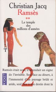 remarques: | le temple des millions d'années tome 2 Ramsès était à 23 ans bien seul pour règner mais il avait une bonne épouse, Nefertari et une bonne mère, Thouya >> p. 9 description de Ramsès, un grand et athlétique pharaon, env. 1.80 à 1.90 m de hauteur, avec selon l'auteur une chevelure blonde vénitien (alors que d'autres sources le décrivent comme un homme roux!) n.b. vénitien = roux mélangé d'une teinte de blond plus ou moins prononcée, ce qui donne une coiffure avec des nuances dorées et cuivrées il avait succédé à Sethi Ier qui avait règné durant 15 ans, Ramsès décida de combattre comme un lion pour servir l'Egypte >> p. 12 tel son compagnon Massacreur, un lion de 4.- m de long (avec la queue?) et dont on entendait le rugissement à 15 km à la ronde!! Menelas, le grec, risque un coup d'audace: reprendre Hélène sa captive, maintenant protégée par la reine Thouya, contre la libération de jeunes otages égyptiens >> p. 58 le sacrifice d'Hélène qui se donne la mort sur le navire grec après la libération des otages entretemps, Achâ le diplomate semble prendre une attitude dangereuse et ambigüe servant à la fois Ramsès et son frère Chenar qui lui s'allie maintenant avec Raia, un espion hittite tandis que Ramsès prend le titre officiel de Ramsès II (1279 BC) >>> p. 95 éloge des arbres dont l'utilisation est total comme vivant (culture) et comme mort (ébenisterie et chauffage) les trois cités sacrées de l'Egypte: Heliopolis, Thèbes et Memphis le complot secret contre Ramsès se resserre alors que Moïse cherche encore sa destinée Chénar est nommé ministre des affaires étrangères avec comme assistant, le pseudo-traître Achâ >>> p. 133 description de la cité d'Akhetaton (= l'horizon d'Aton, actuellement Amarna), la cité abandonnée d'Akhénaton (= Amenhotep ou Aménophis IV) et de son épouse Nefertiti, située à 400 km au nord de Thèbes un nouvel adversaire de Ramsès apparaît: le mage Ofir qui veut rétablir le culte d'Aton mais qui est en fait le chef d'une organisation secrète hittite en Egypte rencontre d'Ofir et de sa magie avec Moïse, Ofir lui parle d'un dieu unique tel Aton et considère Moïse comme le chef prédestiné du peuple hébreu >> p. 189 les architectes de l'Egypte: la confrérie de Deir-el-Medineh >> p. 192 le temple de Ramsès: le Ramesseum = temple des millions d'années >>> p. 303 description du temple qui couvrirait 5 hectares; outre le sanctuaire lui-même, le temple comprendrait un palais et de nombreuses dépendances dont une bibliothèque, des entrepôts et un jardin ce temple serait voué au culte de la puissance surnaturelle présente dans l'être de pharaon Homère resté en Egypte continue d'écrire son Iliade >> p. 211 les crues du Nil (20 km de large à Memphis, 200 km dans le delta) Serramanna devenu chef de la sécurité commence à soupconner Setaou, le maître des serpents alors que Ramsès décide de construire une nouvelle capitale Thèbes = cité d'Amon avec les temples de Karnak et de Luxor, Memphis reste la capitale économique, la balance des deux terres (la Basse et la Haute Egypte) n.b. l'electum = alliage d'or et d'argent extrait à l'état naturel en Asie Mineure dans l'Antiquité devant Ramsès, Moïse prend la défense d'Akhénaton mais retient sa croyance de dieu unique, toutefois il accepte de prendre la direction des travaux (il devient superviseur des chantiers royaux) pour la construction de Pi-Ramsès, la nouvelle capitale, avec l'aide du peuple hébreu dont les maçons sont les plus qualifiés pour la fabrication des briques >> p. 248 description d'Avaris où se trouve la cité détestée avec le temple du dieu Seth >> p. 251 la légende de Moïse "celui qui est né sauvé des eaux", description des hébreux, les meilleurs briquetiers d'Egypte, la fabrication des briques avec de la paille hachée mêlée au limon du Nil ce qui en faisait un genre d'argile très résistant Sary, l'ex-précepteur de Ramsès, renvoyé du palais, sème le trouble parmi les hébreux tandis que le mage Ofir prépare un envoûtement de malédiction sur Nefertari l'accouchement de la reine s'effectue alors avec de grandes difficultées, Setaou est appelé pour conjurer le mauvais sort lors d'une campagne militaire en Nubie, Ramsès découvre le site d'Abou Simbel et décide d'y faire construire un temple au nom de son épouse et pour y sceller la paix avec l'Egypte et la Nubie Ramsès inaugure le temple de Kâ (son double) à Karnak et Luxor alors que Moïse, après avoir fini la construction de Pi-Ramsès, se dévoue maintenant à son dieu unique Moïse, ayant tué par accident Sary qui brutalisait un hébreu, doit s'enfuir d'Egypte et se réfugie dans le désert d'où il se rendra au mont Sinaï pour y rencontrer Yahve, le dieu unique >> ce deuxième tome sur la série Ramsès est le moins bon de la trilogie de Ramsès, le développement se perd dans les intrigues, à nouveau il est fait beaucoup mention des dieux égyptiens mais peu de détails historiques sauf que l'auteur essaie de glisser dans son récit quelques analogies avec l'ancien testament, dont particulièrement le destin de Moïse dans ce livre, on remarquera déjà les tendances polar développées par Christian Jacq qui par la suite se spécialisera d'ailleurs dans le roman policier |