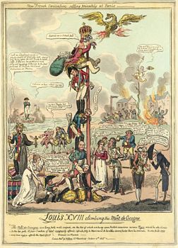 remarques: | Louis XVIII et la France de la "comédie humaine" n.b. livre faisant partie des douze meilleures oeuvres historiques (>> voir plus bas information) - Louis XVI (1754-1793) - Antoinette d'Autriche (1770-1793) - Louis XVII (1785-1795), fils de Louis XVI - Louis XVIII, comte de Provence (1755-1824),frère de Louis XVI - Charles X, comte d'Artois (1757-1838) - le duc d'Angoulême (1775-1844) = Louis-Philippe, fils de Charles X, renonce au trône et au titre de Louis XIX - le successeur de Charles X sera Louis-Philippe Ier (1773-1850), duc d'Orléans, dernier roi de France, cousin de Charles X, fils de Louis-Philippe d'Orléans, dit Philippe-Egalité, guillotiné en 1793 n.b. la seule survivante de la famille de Louis XVI fut Marie-Thérèse-Charlotte de France, surnommée Madame Royale (1778-1851) duchesse d'Angoulême, premier enfant de Louis XVI, soeur de Louis XVII Talleyrand, prince de Bénévent, fut l'instigateur avec l'aide de Chateaubriand et grâce à son complice le tsar Alexandre pour rétablir Louis XVIII sur le trône de France - ce fut une monarchie constitutionnelle qui accepta l'héritage de Napoléon Ier, Louis XVIII établit la charte constitutionnelle pour les français n.b. inamovibilité: qui ne peut être destitué, déplacé ou suspendu >> p. 78 le jugement des régicides - le congrès de Vienne de 1815 durait encore lorsqu'on apprit le débarquement de Napoléon à Cannes (mars 1815); lors du congrès dont Talleyrand était le délégué pour la France, on y avait convenu de respecter les frontières de la France avant 1792, de ne pas prévoir des troupes d'occupation alliées et de ne pas demander de fortes indemnités de guerre mais après Waterloo, les conditions devinrent beaucoup plus dures >> p. 100-103 les négociations de 1815 après Waterloo - par la suite, le duc de Richelieu, ami du tsar remplaça Talleyrand >> p. 107 la France était le parent qui avait péché et qui même, en péchant deux fois, a prouvé la fragilité de son repentir - la France était maintenant contrôlée par le conseil des Quatre >> p. 114 la chambre introuvable elle est élue les 14 et 22 août 1815 et comportait une majorité de députés royalistes, dits "ultras", l'expression de chambre introuvable est attribuée à Louis XVIII, pour exprimer l'idée qu'il n'aurait pu en rêver une aussi favorable à son trône toutefois, en 1817, grâce à Richelieu, le conseil des Quatre accepte la participation de la France comme cinquième conseiller, ce fut la restauration de la France en Europe n.b. atrabilaire = porté à la mauvaise humeur, à la colère >> p. 168 la loi sur la presse (1819) >> p. 182 l'opposition aux Bourbons renaît >> p. 183 un Napoleon non plus oppresseur, mais transformé, transfiguré et sur son rocher de Saint-Hélène presque martyr n.b. le suffrage censitaire est le mode de suffrage dans lequel seuls les citoyens dont le total des impôts directs dépasse un seuil, appelé cens, sont électeurs - en 1821, le ministère "ultra" (royalistes extrêmes) impose son gouvernement, Villèle devient président du conseil - juillet 1821, jugement contre les membres d'un complot contre le gouvernement, appelés les "carbonaristes", dans la Loire, il y a aussi "les chevaliers de la liberté", aucune de ces tentatives ne réussira >> p. 241 l'affaire des quatre sergents de La Rochelle >> p. 243 l'expédition espagnole pour rétablir sur le trône Ferdinand II, le Bourbon d'Espagne - le 7.4. 1823, l'armée franchit la Bidassoa et entra dans Irun, nul obstacle du côté des populations, la troupe française avait pour elle le peuple, le clergé, les moines, c'est-à-dire tous ceux qui en 1808 s'étaient levés contre Napoleon - rétrospective sur le règne de Louis XVIII, un roi constitutionnel, une seule favorite: Madame de Cayla, Zoé Talon, dernière passion de Louis XVIII >> p. 322 dans sa jeunesse, Louis XVIII avait cédé aux idées philosophiques de son temps, mais il était trop éclairé pour ne pas comprendre combien la foi en l'autre vie assure l'ordre et la discipline en celle-ci >> un livre historique, plutôt détaillé, mais parfois barbant, décrivant surtout la politique, législation et administration de la période Restauration sous Louis XVIII annexes - divers portraits de Louis XVIII - caricatures a) Louis XVIII soutenu par les alliés pour reprendre la couronne b) Louis XVIII essayant de porter les bottes de Napoleon Information A) quatrième fils du dauphin Louis et frère cadet de Louis XVI, Louis XVIII est appelé Monsieur quand ce dernier devient roi, exilé sous la révolution française et le premier empire, il adopte en tant que prétendant au trône le nom de jure de Louis XVIII, l'ordre dynastique incluant son neveu Louis XVII mort en prison sans avoir jamais ni été sacré, ni avoir régné, surnommé "le désiré" par les royalistes, il revient en France lors de la Restauration qui suit la chute de Napoléon, il est renversé durant les Cent-Jours, puis revient à nouveau au pouvoir après la bataille de Waterloo durant son règne, considérant l'évolution de la France entre 1789 et 1814, Louis XVIII s'attelle à composer avec les acquis de la Révolution et de l'Empire, ayant quitté la France, le même jour que son frère (qui fut reconnu et arrêté à Varennes), à 35 ans, il en a 58 quand son règne commence effectivement, après avoir passé 23 ans en exil, il octroie au peuple une constitution utilisant un terme d'ancien régime: la Charte de 1814, mène une politique de réconciliation et d'oubli concernant les violences révolutionnaires en tentant de calmer la terreur blanche, ne restaurant de l'ancien régime que le décor, il a dans un premier temps à composer avec une chambre parlementaire "plus royaliste que le roi": la chambre introuvable, mais en 1820, après l'assassinat de son neveu le duc de Berry, troisième dans l'ordre de succession au trône, la Restauration prend un tournant plus dur, voire réactionnaire
