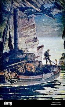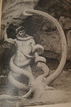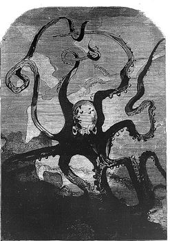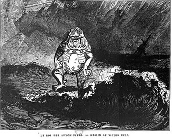 remarques: | les travailleurs de la mer tomes 1 et 2 illustrations de Jean Monod part premier: l'archipel de la Manche - description de l'île de Guernesey et de sa capitale Saint-Pierre-Port - autres îles de l'archipel: Jersey (capitale Saint-Hélier), Aurigny et Serk - en 1865, Jersey représentait le 7ème port de l'Angleterre - le granit, pierre principale de Guernesey - à l'origine, l'archipel était quelque peu un peuple de contrebandiers et naufrageurs - le cromlech = monument mégalithique formé de menhirs placés en cercle part deuxième: les travailleurs de la mer a) Gilliatt >> p. 94 les maisons visionnées = maisons mortes habitées par des diables >> p. 98 description de la Gilliatt, mère de Gilliatt, considéré lui commeun genre de sorcier, il habitait au lieu dit le Bû de la Rue, petit exposé sur les réfugiés >> p. 102 le livre de Tilingius sur la rhubarbe en 1679 avec le titre "de rhubarbaro" - sarregousets = figures que font les paysans quand ils voient des diables marins >> p. 104 le roi des auxcriniers = démon de la tempête >> p. 117 la panse = petite chaloupe ventrue b) Mess Lethierry - description de Lethierry, un marin armateur c) les deux amours de Lethierry: 1/ Déruchette, sa filleule, une jolie innocente 2/ la Durande, le premier bateau-vapeur des îles de la Manche à la silhouette monstrueuse >> p. 149 la galiote à Lethierry = la Durande - Rantaine, l'associé escroc de Lethierry >> p. 155 la hiérarchie anglaise: gentleman (monsieur), puis esquire (écuyer), sir (chevalier), lord (laird en Ecosse), earl = comte (jarl en Norvège), pair et prince royal >> p. 159 la mélodie Bonny Dundee n.b. air ancien du répertoire écossais, utilisé pour de nombreuses chansons, Walter Scott a adapté une version (paroles et musique) en 1825, ce poème a été inspiré par le personnage historique de John Graham (1648-1689), 1er vicomte de Dundee, héros d'une des révoltes jacobites et mort lors de la bataille victorieuse de Killiecrankie (1689) d) sieur Clubin devient l'adjoint de Mess Lethierry et peut'être même son successeur >> p. 243 la femme jambe de bois au Jacressarde de Sant-Malo >> p. 270 le rocher de Douvres le phare des Roches-Douvres est un phare français situé en mer, sur le plateau des Roches-Douvres, entre les îles de Bréhat et Guernesey, c'est le dernier phare en mer construit en France (1869) >> p. 292 navigation dans le brouillard >> p. 294 la Durande d'échoue sur un écueil mais l'accident avait été prévu par Clubin qui voulait disparaître avec une forte somme d'argent tout en conservant une réputation d'honnêteté en voulant couler comme capitaine avec la Durande >> p. 302-304 dissertation sur l'hypocrisie - mais Clubin avait mal calculé son coup, il s'était trompé sur le lieu de naufrage et en voulant s'échapper en nageant, il se sentit agrippé par les pieds - à Guernesey, Lethierry se lamente sur la perte de sa Durande dont la machine à vapeur était resté intacte, il promet alors la main de sa fille à celui qui sauve sa machine et Gilliatt se met sur les rangs fin du tome 1 tome II première partie: Gilliatt le malin (le sauvetage de la machine en pleine mer) a) l'écueil >> p. 70/71 description d'une caverne sous-marine = exemple parfait du style de Victor Hugo b) le labeur - les forces de Gilliatt faiblissent - dissertation sur la persévérance, la destinée et l'infini c) la lutte - Gilliatt façe aux périls de la mer >> p. 127 description de la tempête et des vents >> p. 139 averse, ouragan, fulgurations, fulminations, vagues jusqu'aux nuages, écume, détonations, torsions frénétiques, cris, rauquements, sifflements tout à la fois, déchaînements de monstres d) les doubles fonds de l'obstacle - Gilliatt atteint l'endroit où sieur Clubin s'était perdu et doit lui-même maintenant affronter une pieuvre géante >> p. 166/167 description de la pieuvre, appelée aussi poulpe, céphalopode et kraken dans la légende, ce monstre dispose généralement de huit tentacules formées de 400 pustules qui toutes font fonction de ventouse, la seule partie vulnérable est la tête et grâce à son couteau, Gilliatt réussira à vaincre la bête note de Hugo: quand dieu veut, il peut exceller dans l'éxécrable >> p. 184 le garde-manger de la pieuvre qui contient le squelette de sieur Cublin nota bene cet animal se caractérise, au sein des céphalopodes, par sa grande intelligence et sa capacité à changer de couleur au millième de seconde, à leur guise, par mimétisme avec son environnement ou en fonction de ses émotions, son corps est entièrement souple, hormis un bec qui ressemble à certains égards à celui des perroquets, ses huit bras sont pourvus de ventouses et son sang est transparent-bleuâtre deuxième partie: Déruchette a) nuit et lune - Gilliatt pensait que Déruchette serait à lui, mais un autre amoureux le concurrençait auprès de la belle: le révérend Ebenezer Caudray dont auparavant Gilliatt avait sauvé la vie de la noyade b) la reconnaissance en plein despotisme - la reconnaissance de Mess Lethierry envers Gilliatt qui comme promis recevrait la main de Déruchette qui toutefois en aimait un autre c) le départ du "Cashmere" - et ce sera Gilliatt de façon imprévu equi conseille aux deux amoureux de se marier avant de partir pour Londres avec le sloop de poste "Cashmere", ce sera même qui lui qui ordonna le mariage à Guernesey >> p. 274 la fin de Gilliatt auprès de la roche surnommée Chaise Gild-Holm-Ur en se laissant noyer par la marée alors qu'il contemple disparaître à l'horizon son amour qu'il avait sacrifié pour un autre >> p. 283 ce regard inexprimable contenait toute la quantité d'apaisement que laisse le rêve non réalisé, c'était l'acceptation lugubre d'un autre accomplissement >> un roman assez intéressant, surtout le tome II mais avec les dissertations et descriptifs d'usage utilisés par Hugo nomenclature - la métonymie est une figure de style par laquelle on rem