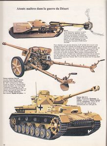 remarques: | prologue une guerre moderne de 33 mois (septembre 1940 à mai 1943) sur une distance de 2500 km durant laquelle des chefs respectés dans les deux camps devinrent des héros 1) le premier mouvement du pendule la défaite de l'armée de Graziani 2) première offensive de Rommel supérieur en tactique et en matériel, l'offensive allemande reprit en 4 semaines la Cyrénaïque (sauf Tobrouk) que les anglais avait mis 4 mois pour occuper 3) le siège de Tobrouk le port le plus important entre Tunis et Alexandrie, un périmètre de 60 km avec un rayon de 30 km, attaqué alors par des moyens trop faibles et toujours ravitaillé par la Royal Navy, ce fut le premier échec de Rommel en avril 41, le siège de Tobrouk ne sera levé que le 10.12.1941 lors de l'opération Crusader 4) duel avec l'Afrika Korps les opérations Brevity (15.5.1941), Battleaxe (14.6.) et Crusader du 18 au 23.11.1941 menée par Auchinleck, Rommel doit se replier sur sa base de départ d'El Agheila au 24.12.1941 >> p. 20/21 les nouveaux blindés anglais: MK6 Crusader, MK1 Stuart et MK3 Valentine >> p. 23 le fameux canon allemand de 88 mm avec une portée de 10 km, aucun char ne tenait devant lui 5) Rommel contre-attaque ré-occupation de la Cyrénaïque du 21.1. au 5.2.1942, mais arrêt sur la ligne de Gazala >> p. 26 le nouveau char allemand Mark III special, canon long de 50 mm avec obus perforant à longue distance >> p. 27 le nouveau char allié M3 General Grant avec 2 canons, un de 37 mm et l'autre de 75 mm mais en casemate fixe, ce qui limitait son efficacité 6) les combats de Gazala après une pause, Rommel lance son offensive par le sud sur les arrières anglais, mais il ne peut atteindre la côte et se retrouve piégé derrière la ligne Gazala, il arrive toutefois à se dégager grâce à sa tactique d'artillerie, les anti-chars, et de chars combinés (bataille du Chaudron) désorganisant complètement la VIIIème armée, mais il ne peut profiter de poursuivre celle-ci car il est arrêté par la farouche résistance de Bir Hakeim qu'il réduira seulement après 10 jours, après quoi Tobrouk tombe en 24 heures, mais la VIIIème armée aura eu le temps de se réorganiser à El Alamein >> p. 30 la défense de Bir Hakeim >> p. 31 la prise de Tobrouk par un assaut lancé depuis le sud-est (au lieu de l'ouest comme essayé auparavant) 7) première bataille d'El Alamein retranchés sur une ligne de 50 km bloquée au sud par la dépression incontournable de Qattara, les anglais repoussent le 1.7.42 l'assaut des troupes allemandes exténuées et en partie décimées 8) Alam-Halfa une dernière offensive de Rommel le 31.8.42 sera repoussée suite au manque de moyens (surtout de carburant) par Montgomery qui aura bien deviné les plans de Rommel, notamment en défendant particulièrement les collines de Alam-Halfa, Rommel doit se replier avec de lourdes pertes et prendre une position défensive n.b. si Hitler lui avait alors envoyé les renforts qu'il enverra en Tunisie à la fin de l'année, le cours de la guerre à El Alamein aurait pu être grandement changé 9) le nerf de la bataille: les ravitaillements loi de la guerre du désert: plus le vainqueur avance, plus il s'affaiblit (allongement et protection des voies de communication) et de plus chez les alliés, la Royal Navy contrôlait les voies maritimes et dominait la maîtrise du ciel >> p. 37 les camions de ravitaillement 10) l'offensive alliée à El Alamein le 23.10 Montgomery déclanche son offensive avec une énorme supériorité matérielle après avoir réorganiser le commandement, l'équipement, l'entraînement et le moral de ses hommes, l'offensive s'enlise mais Montgomery insiste et lance le 1.11. l'opération Supercharge qui voit la percée décisive des lignes allemandes le 3.11.1942 11) opération Torch au même moment avec 500 navires, des forces anglaises et américaines débarquent au Maroc, à Alger et à Oran, toutefois leur campagne retardée, les alliés manquèrent l'occasion de prendre immédiatement contrôle de la Tunisie (il aurait peut'être fallu aussi débarquer en Tunisie, mais le commandement allié ne voulait pas prendre ce risque) 12) la course vers Mareth la seule chance de Rommel était maintenant de rejoindre la Tunisie le plus vite possible sans trop de pertes et en 15 jours, il effectua une retraite magistrale jusqu'à El Agheila atteignant le 16.2.43 la ligne Mareth sans que la VIIIème armée ait pu le rattraper et l'encercler et malgré l'arrivée de renforts allemands (la 5ème armée de von Arnim) en Tunisie et quelques succès des troupes allemandes (victoire à Kasserine, mais défaite à Médénine qui sonna le glas de l'armée d'Afrique), capitulation de l'Afrika Korps le 10.5.1943 avec un bon ravitaillement, les forces de l'Axe auraient pu résister plus longtemps, mais avec une supériorité terrestre, maritime et surtout aérienne des forces alliés, la défaite était inévitable >> p. 60 le Nebelwerfer capable de lancer 10 projectiles de 35 kg chacun en 10 secondes 13) les généraux du désert: Wavell, O'Connor, Kesselring, Rommel, Cruewell, Ritchie,Auchinleck, Koenig, Alexander, Montgomery, von Arnim et Leclerc >> un superbe cahier de 64 pages sur la guerre du désert, bien documenté, avec des illustrations et croquis d'armement remarquables n.b. la source des éditions Hachette est prise depuis "History of the Second World War" published by Purnell+Sons and Imperial War Museum en 1967 n.b. voir aussi sur google: la guerre du désert, expériences allemandes durant l a deuxième guerre mondiale annexes - couverture du cahier - char-démineur, canon antichar PAK et Panzer Mk IV G - l'atout majeur: le canon de 88 mm - détails du char américain Sherman |
