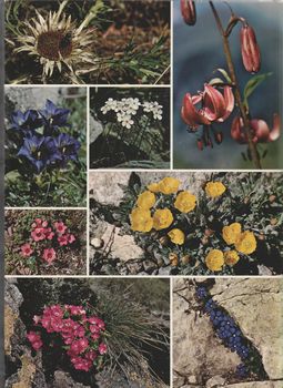 remarques: | fleurs alpines conditions de vie des fleurs alpines, associations végétales, roches et pelouses fleuries, éboulis et pierriers, combes à neige, pelouses alpines, zone de la lande et des arbustes, forêt subalpine de conifères, plantes subalpines des roches et des éboullis, sources et prés humides, prairies alpestres en fleurs nomenclature des plantes alpines par ordre d'apparition dans les vignettes: - soldanelle, primevère, pétasite, anémone, renoncule, - clématite, androsace, saxifrage, gentiane, parnassie - myosotis, éritriche, silène, oeillet des rochers - alsine, ceraïste, aconit, pavot, tabouret, hutchinsie, - drave, biscutelle, orpin, joubarbe, dryade, benoite - églantine, lotier, sainfoin, trèfle des alpes - hélianthème, géranium des alpes, pensée, épilobe, daphné - buplèvre, astrance, livèche, azalée, airelle, - rhododendron, polémone, serpolet, molène, rhinante - euphraise, véronique des rochers, globulaire, grassette - campanule, adénostyle, raiponce, edelweiss, aster - vergerette, chrisanthème, arnica, pissenlit - séneçon, centaurée, lis martagon, anthérique - véraire, orchia, nigritelle, charmorchis, gymnadème, orchis >> un album assez intéressant, mais surtout de magnifiques illustrations, album complet de ses 129 images collées et plutôt rare à trouver annexes - couvertures de l'album - gentiane jaune et gentiane bleue - aconit paniculé (famille des renonculacées) - orpin âcre (famille des crassulacées) - épilobe à feuilles étroites (famille des onagracées) - molène (famille des scrofulariacées) |