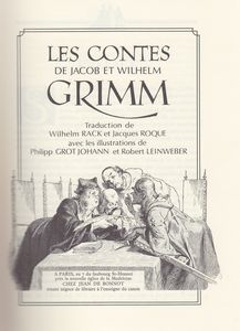 remarques: | les contes de Jacob et Wilhelm Grimm avec les illustrations de Philipp Grot Johann et Robert Leinweber 86 contes et histoires dont les plus connus: le roi des grenouilles, le loup et les sept chevreaux, Doucette, Cendrillon, l'oiseau d'or, Hansel et Gretel, les musiciens de la ville de Brême, le vaillant petit tailleur, le petit chaperon rouge, l'âne aux pièces d'or, la belle au bois dormant, le petit Poucet, Blanche Neige, les trois plumes, le lièvre et le hérisson) >> un livre magnifique Information les frères Grimm (en allemand Brüder Grimm ou Gebrüder Grimm) étaient deux linguistes, philologues et collecteurs de contes de langue allemande: - Jacob Grimm, né le 4 janvier 1785 à Hanau et mort le 20 septembre 1863 à Berlin - Wilhelm Grimm, né le 24 février 1786 à Hanau et mort le 16 décembre 1859 à Berlin les œuvres communes les plus significatives des frères Grimm sont leur collection de contes pour enfants, leur recueil de légendes (201 contes auxquels sont joints les 28 textes qu’ils ont supprimés dans la dernière mouture de leur recueil et 10 légendes pour les enfants, réunis dans la première édition intégrale commentée de José Corti les contes pour les enfants et la maison des frères Grimm ainsi que leur dictionnaire Jacob Grimm apporta des contributions de première importance à la linguistique allemande alors naissante, elles contribuèrent à fonder une grammaire historique et comparée; dans la deuxième édition de sa Grammaire allemande, Jacob Grimm décrivit les lois phonétiques réglant l'évolution des consonnes dans les langues germaniques et connues depuis sous le nom de loi de Grimm, il est également l'auteur d'une histoire de la langue allemande (Geschichte der deutschen Sprache) le compositeur Richard Wagner s'inspira de plusieurs légendes recueillies par les deux frères pour la composition de ses opéras ainsi que de la mythologie allemande de Jacob Grimm pour sa Tétralogie en 1945, les forces d’occupation alliées en Allemagne interdirent de publication les contes de Grimm, le motif invoqué était que la violence s’y trouvant aurait été en partie responsable des atrocités commises par les nazis, de plus, ils contenaient quelques textes antisémites comme le juif dans les épines contes les plus célèbres: - Blanche-Neige, Schneewittchen - Cendrillon, Aschenputtel (version modifiée de celle de Charles Perrault) - la Belle au bois dormant, Dornröschen (version modifiée de celle de Charles Perrault) - le Petit Chaperon rouge, Rotkäppchen (version modifiée de celle de Charles Perrault) - le loup et les sept chevreaux, der Wolf und die sieben jungen Geißlein - les musiciens de Brême, die Bremer Stadtmusikanten - le vaillant petit tailleur, das tapfere Schneiderlein - dame Holle, Frau Holle - Frérot et Sœurette, Brüderchen und Schwesterchen - Hansel et Gretel, Hänsel und Gretel - Rose-Neige et Rose-Rouge, Schneeweißchen und Rosenrot - Raiponce, Rapunzel - Nain Tracassin, Rumpelstilzchen - le serpent blanc, die weiße Schlange - Tom Pouce, Daumesdick - la petite gardeuse d'oies, die Gänsemagd - l'eau de la vie, das Wasser des Lebens - le roi grenouille ou Henri de Fer, der Froschkönig oder der eiserne Heinrich Jacob et Wilhelm GRIMM sont deux écrivains et érudits, is font leurs études à l'université de Marbourg, Jacob comme philologue, s'intéresse à la littérature médiévale et à la linguistique, Wilhelm comme critique littéraire, ils travaillent dans la diplomatie et dans diverses bibliothèques à Kassel, en 1830, les deux frères sont engagés à l'université de Göttingen, Wilhelm en tant que bibliothécaire et Jacob comme chargé de cours en droit ancien, en histoire de la littérature et en philosophie, ils quittent l'université pour des motifs politiques et reviennent à Kassel en 1837, quelques années plus tard, Frédéric-Guillaume IV de Prusse les invite à s'installer à Berlin, ce qu'ils font dès 1841, devenus professeurs dans son université, ils demeurent à Berlin jusqu'à la fin de leur vie l'œuvre scientifique majeure de Jacob Grimm est sa Deutsche Grammatik (grammaire allemande, 1819-1837) qui est généralement considérée comme le fondement de la philologie allemande, dans la deuxième édition, parue en 1822, Grimm expose sa loi sur le changement et le déplacement des sons, loi qui contribua à la reconstitution des langues mortes, il écrivit également Über d'en altdeutschen Meistergesang (poésie des maîtres chanteurs, 1811), Deutsche Mythologie (mythologie allemande, 1835) ainsi qu'une Geschichte der deutschen Sprache (histoire de la langue allemande, 1848) au nombre des publications de son frère Wilhelm Grimm se trouvent plusieurs livres ayant pour thème la littérature et les traditions populaires allemandes, parmi lesquels les Altdänische Heldenlieder (anciens chants héroïques danois, 1811), die deutschen Heldensage (les légendes héroïques de l'ancienne Germanie, 1829), Rolandslied (la chanson de Roland, 1838) et Altdeutsche Gespräche (ancien dialecte allemand, 1851) les frères Grimm s'intéressent également aux contes populaires allemands, après les avoir réunis à partir de différentes sources, ils les publient en deux volumes sous le titre de Kinder- und Hausmärchen, (contes pour les enfants et les parents, 1812-1829), une nouvelle édition paraît en 1857; elle contient des histoires supplémentaires et devint le fameux livre intitulé Contes de Grimm, les frères Grimm travaillent ensemble sur nombre d'autres ouvrages; ils publient notamment en 1852 le premier volume du monumental et classique Deutsches Wörterbuch (dictionnaire allemand), qui est achevé par d'autres érudits en 1958 il s’en passe de belles dans les belles histoires des frères Grimm, bien plus trash que ce qu'on en a retenu: j’aimerais vous raconter une histoire: il était une fois une femme qui désirait, plus que tout au monde, avoir un enfant, un jour d’hi