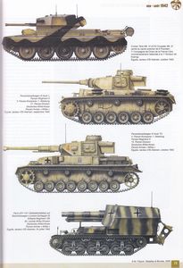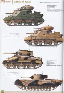 remarques: | prologue l'année 1942 sera le tournant de la guerre avec le début des défaites de l'Axe et du poids de l'industrie américaine d'armement, la guerre en Afrique est devenue une guerre de matériel où le plus fort numériquement sera le vainqueur petit récapitulatif de la deuxième campagne: 1) la seconde conquête de la Cyrénaïque de janvier 1942 à mai 1942 quelques renforts (dont les nouveaux panzer III et IV mieux blindés et mieux armés, la division blindée "Littorio" avec les nouveaux chars Semoventi M40) sont maintenant parvenus à Rommel suite à l'intervention renforcée de la Luftwaffe en Méditerranée Bastico devient le commandant des forces italiennes, du côté anglais, de nouveaux renforts sont aussi arrivés mais la plupart des troupes sont inexpérimentées, toutefois les forces anglaises commencent à bénéficier du système d'information Ultra; arrivée aussi des premiers chars américains Grant, et le 21.1.1942 dans le secret le plus absolu, Rommel repart à l'assaut, Benghazi est réoccupée, mais la plupart des forces anglaises réussissent à se replier sur la ligne de défense de Gazala, puis le front reste calme jusqu'en mai lorsque Rommel, avec de nouveaux renforts, repart à l'assaut avec Tobrouk comme objectif prioritaire >> p. 7 les embarquements allemands à Naples le 26.5. offensive "Venezia" avec laquelle Rommel veut prendre à revers la ligne Gazala avec un contournement par le sud >> p. 23 les nouveaux chars italiens de la compagnia mista esperimentale = RECAM >> p. 25 le PKW III Ausführung J avec canon long et court, autoblinda italienne et le char anglais Cruiser Mark VI Crusader considérations sur la seconde conquête de la Cyrénaïque le succès de l'Afrika Korps est dû à de nouveaux renforts et à la tactique de Rommel alors que les anglais doivent aussi faire façe à l'offensive japonaise, mais la 2ème conquête de la Cyrénaïque sera plus laborieuse que la première, l'effet de surprise n'a plus joué et il y a mésentente entre Rommel et le commandement italien, toutefois l'Afrika Korps va bénéficier de l'expérience acquise en 1941 2) la bataille de Gazala et la conquête de Tobrouk mai-juin 1942 = l'heure de gloire de Rommel, malgré quelques retards dûs aux convois de ravitaillement, l'Afrika Korps progresse mais n'atteint pas ses objectifs initiaux et elle sera même mise en grand danger lors de contre-attaques anglaises, alors que les forces allemandes combattent dos au défense de la ligne de Gazala, toutefois grace à la science tactique de Rommel qui met ses antichars en première ligne et détruit les assauts des chars anglais, notamment lors de la bataille du "chaudron", les anglais sont repoussés avec de lourdes pertes (50% de leurs chars), mais Rommel a sous-estimé la résistance de Bir Hakeim au sud ce qui permettra à la 8ème armée de se replier et de se restructurer >> p. 44 le siège de Bir Hakeim après avoir réduit Bir Hakeim, Rommel lance le 13.6. ses troupes vers l'est, son offensive est un succès, tous les objectifs sont atteints sans pertes notables et le 18.6. l'encerclement de Tobrouk, défendu par le général sud-africain Klopper, est terminé le commandement anglais est quelque peu désemparé quant aux intentions de Rommel et celui-ci après avoir retiré la plupart de ses panzer qui avaient fait diversion vers l'est, l'assaut est lancé sur Tobrouk le 20.6. par le point sud-est (ce qu'il aurait déjà dû faire en 1941) et à 19.00 heures du même jour le port de Tobrouk est occupé, la victoire est totale pour l'Afrika Korps et son retentissement est immense dans le monde, Rommel est nommé Feldmarschall et le général anglais Ritchie est relevé de ses fonctions par Auchinleck considérations sur la bataille de Gazala et la conquête de Tobrouk, l'opération Venezia a été bien planifiée par Rommel qui a toutefois sous-estimé certains points de défense mais il aura du moins surpris les forces anglaises, les raisons de la défaite anglaise à Gazala: une organisation trop rigide et morcelée, une mauvaise maîtrise des combats interarmes façe à un Rommel qui possède une supériorité tactique malgré un fort armement britannique (les chars Grant, le nouveau antichar 6 pounder et de nombreux chasseurs-bombardiers Hurricane) mais Rommel aura aussi flirté avec la défaite (Bir Hakeim a causé une hémorragie de Stukas constamment harcelés par les chasseurs de la RAF et la situation a été critique avant la bataille du chaudron), ce fut toutefois l'heure des panzers avec une formidable performance des troupes allemandes, mais les divisons italiennes (Ariete et Trieste) s'y distinguèrent également. >> p. 37 le char Grant M3 >> p. 40 un Sturmpanzer II >> p. 45 les chars utilisés durant la bataille de Gazala 3) la poursuite en Egypte ou la marche de la Panzerarmee Afrika vers son destin juin-août 1942, le 23.6. la poursuite vers l'Egypte continue et Rommel veut abandonner la prise de Malte pour pousser son avantage, Hitler lui donne son accord pour le moment, la 8ème armée n'est pas en état d'affronter les troupes allemandes et Auchinleck ordonne un retrait progressif, avec contre-attaques retardatrices, sur El Alamein, ce qui permettra à Rommel de s'emparer de Mersa Matrouh le 28.6. sans subir de graves pertes mais les anglais réussiront en grande partie à se replier sur El Alamein, dernière ligne de résistance qu'il faudra tenir à tout prix à peine arrivé, Rommel lance une offensive sur El Alamein, toutefois ses troupes sont épuisées, il ne dispose plus que d'une centaine de panzers et la situation du ravitaillement est très déficiente, de plus les raids aériens anglais s'accentuent de jour en jour, les assauts de Rommel seront tous repoussés, les contre-attaques de Auchinleck le 5.7. et le 15.7. seront également repoussés avec de lourdes pertes, mais Auchinleck a trouvé le point faible dans les défenses de l'Axe et anéantit l'une après l'autre le