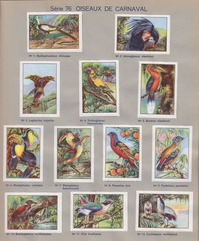 remarques: | album no 4 1935 de NPCK 25 séries du no 76 au no 100 avec ses 300 images collées bien complètes table des matières: 76/ oiseaux de carnaval 77/ par terre et par eau 78/ animaux versicolores 79/ chefs de tribus 80/ les fleurs, petites fabriques de miel 81/ mains de fer 82/ combats d'animaux 83/ la Corée et ses habitants 84/ mollusques sans coquille 85/ seraient-ce des arbres? 86/ construction pyramidales 87/ le monde des punaises 88/ les trésors de la terre 89/ mères et enfants 90/ araignées géantes et scorpions 91/ timbres-poste rares 92/ poissons exotiques d'ornement 93/ les végétaux contre les éléments 94/ points de repère du navigateur 95/ douze joyeux compères 96/ chez les anthropophages 97/ les galles 98/ comètes et météores 99/ chez le petit peuple des abeilles 100/ comment les sauvages se représentent leurs ancêtres |