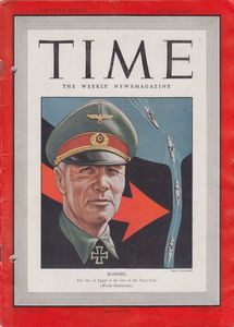 remarques: | Time Magazine issue of 13.7.1942 extracts of the magazine, mostly world battlefronts: 1/ battle of Russia - Hitler is winning with the objectives a) the river Don b) Moscow-Rostov railway c) Moscow itself a big victory for Germany would be if the Red Army would have to retreat behind the Ural mountains and a Russia cut-off from its Northern and Middle East lines to its allies would be no longer a great threat for Germany - fall of Sevastopol but the Germans had to pay a high prize for its capture 2/ battle of Egypt - now since 4 days, the advance of Rommel has been stopped, Auchinleck (the AUK) has halted Rommel at El Alamein 3/ Rommel Africanus - the only man on earth whom Rommel looks up is Hitler and Rommel looks down contemptuously on all other men in the entire continent of Africa, however Rommel is considered as a) a bold and brilliant commander b) the best armored-force general of 2ndWW c) one of the greatest military commanders of modern times - biography of Rommel - war in an extemporaneous (= without previous thought or preparation) 4/ battle of the Atlantic - German submarines had been modernized as it could be examined from a captured U-Boot 5/ battle of the Pacific - it was confirmed that Japanese women were fighting as pilots and in the infantry 6/ battle of China - general Chennault's air group inflicted many losses to the Japanese forces, as explained by commander Chiang Kai-shek 7/ battle of Alaska along the Aloutians against Japanese ships 8/ Axis movement in Egypt (a fifth column?) 9/ Free France the US nor the UK will not yet recognize officially general de Gaulle's Free French Government 10/ muddles and mismanagement - the speech of Winston Churchill answering also the critics following the fall of Tobrouk - Churchill with his babylike head! - however he received an ovation and it is believed that he was still the kind of man to meet the awful necessities of war 11/ a preview of Europe remodeled after the war among 9 big nations left (see map), a partition of Switzerland into France, Germany and Italy was proposed! 12/ the Swiss alphorn 13/ US artillery trying to find new methods to fight tanks inspired by the self-propelled German 88 mm gun and this would be the role of tank destroyers = anti tank mobile guns - the tanks have 2 weaknesses: a) blind spots b) slow speed - the weakness of the tank destroyer is a lack of armour but they can avoid this weakness by high speed, great maneuverability or by long-range shelling from behind a hill with reconnaissance planes directing the fire 14/ the production of ships in US shipyards - the record: 50 ships were built June 1942 by one single company 15/ the war-damage insurance >> quite an interesting magazine, espc. concerning Rommel (on the cover) and the campaign of Egypt, an issue quite rare and expensive |