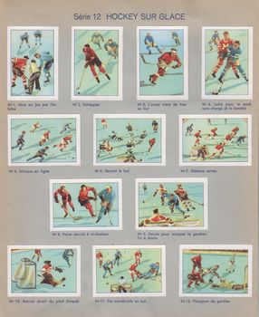 remarques: | une petite encyclopédie des sports volume 1 1938 NPCK 12 séries = 144 images collées bien complètes n.b. il ne semble pas qu'un deuxième volume de ce genre ait paru contenu de ce premier album: 1/ à propos des jeux olympiques (Pierre de Coubertin) 2/ la gymnastique 3/ le ski 4/ le football, le plus beau des jeux 5/ la natation, nagez le crawl 6/ des jeux d'Anvers aux jeux de Berlin 7/ le tennis 8/ le cyclisme 9/ les avirons, ramer style classique 10/ le football, la défense du but 11/ douze exercices pour votre santé 12/ le hockey sur glace |