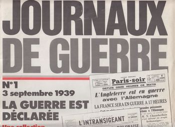 remarques: | une publication hebdomadaire Hachette comportant 72 parutions chaque numéro comprend un journal, un document ou un magazine datant de l'époque de la 2ème guerre mondiale souvent accompagnés d'une dossier de plusieurs pages présentant commentaires et témoignages le no 1 est celui du 3.9.1939 la guerre est déclarée comprenant le no du lundi 4.9.1939 de France-Soir quelques détails sur les parutions: A) no 1 (septembre 1939), la guerre est déclarée au no 12 (novembre 1940), la naissance de la France Libre B) no 13 (décembre 1940), l'arrestation de Laval au no 24 (juin 1941, le cinéma et la chanson C) no 25 (août 1941), l'attentat contre Déat et Laval au no 36 (janvier 1942), la résistance s'organise D) no 37 (avril 1942), Pétain rappelle Laval au no 48 (novembre 1942), les alliés débarquent en Afrique du Nord E) no 49 (novembre 1942), la flotte se saborde à Toulon au no 60 (septembre 1943), les camps de concentration F) no 61 (11.11.1943), la résistance en France au no 72 (mars 1945), les français franchissent le Rhin |