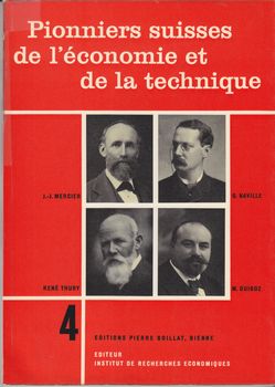 remarques: | pionniers suisses de l'économie et de la technique, numéro 4 cahier publié par l'IRE (Institut de recherches économiques) 1/ Jean-Jacques Mercier-Marcel (1826-1903) maître-tanneur, créateur du funiculaire Lausanne-Ouchy, animateur du développement économique de Lausanne 2/ Gustave Naville-Neher (1848-1929) pionnier de l'industrie métallurgique et de l'aluminium 3/ René Thury (1860-1938) inventeur remarquable et pionnier de l'industrie électrique 4/ Maurice Guigoz (1868-1919) créateur du lait en poudre Guigoz pour les enfants |