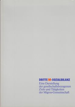 remarques: | deutsche Sprache Dritte M-Sozialbilanz, eine Darstellung der gesellschaftsbezogenen Ziele und Tätigkeiten der Migros-Gemeinschaft |