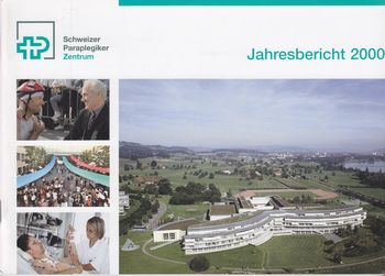 remarques: | deutsche Sprache Jahresbericht 2000 des Schweizer Paraplegiker-Zentrums in NottwilJahres es gibt: - Schweizer Paraplegiker-Zentrum seit 1990 - Schweizer Paraplegiker-Vereinigung (seit 1980 als Selbsthilfeorganisation der Querschnittgelähmten) - Schweizer Paraplegiker-Stiftung (durch Dr. Guido Zäch 1975 gegründet) |