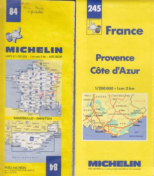 remarques: | diverses cartes Michelin - carte 57 Verdun-Wissembourg 1951 BE - carte 83 Carcassonne-Nîmes 1974 TBE - carte 84 Marseille-Menton 1983 TBE - carte 245 Provence-Côte d’Azur 1987 TBE - carte 246 vallée du Rhône 1987 TBE |