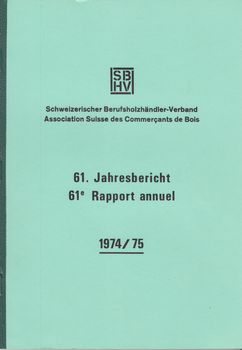 remarques: | deutsche Sprache 61. Jahresbericht SBHV 1974/75 (Schweiz. Berufsholzhändler-Verband, Association suisse des Commerçants de Bois) |