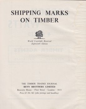 remarques: | English book shipping marks of Timber of European and worldwide shippers, this edition is no longer quite relevant but remains of some interest on this subject |