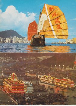 remarques: | divers prospectus sur Hong Kong - petit livre sur Hong Kong - Hong Kong, tourist association, guidebook - diverses cartes postales a) image typique d'Hong Kong: le sampan n.b. le sampan est un bateau chinois à fond plat, à voile unique, servant aussi d'habitation. b) floating restaurants c) Lowu, main gate of sino-british border d) boat people |