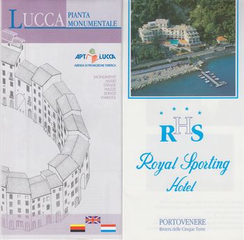 remarques: | a) Cinque Terre, short breaks in Liguria (english) b) diverses cartes postale: Toscane, San Gimignano et Portovenere c) city map Lucca d) brochure Royal Sporting Hotel Portovenere |