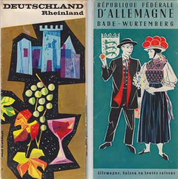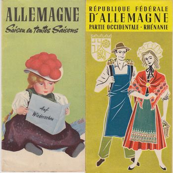remarques: | divers prospectus sur les régions d'Allemagne 1/ l'Allemagne en toutes saisons 2/ partie Occidentale et Rhénanie 3/ Rheinland (deutsch) 4/ Bade-Wurtemberg 5/ partie méridionale et Bavière 6/ Haute-Bavière 7/ Schwarzwald 8/ Baden Baden 9/ Berlin |