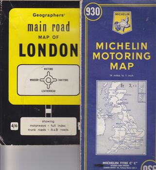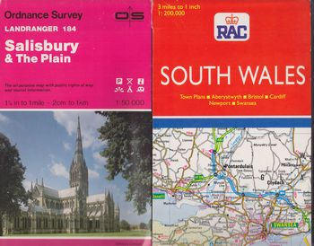 remarques: | a) Michelin motoring map no 930 (1964) b) map of London, main roads (1980) c) map Salisbury and the Plain (1983) (with Stonehenge west of Amesbury) d) map of south Wales (1989) |