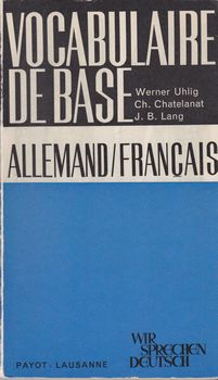 remarques: | vocabulaire de base pour apprendre l'allemand par Werner Uhlig, Ch. Chatelanat et J.B. Lang, wir sprechen Deutsch, allemand/français résumé par thême tel que: der Mensch - Staat und Gesellschaft - das Denken - etc.. |