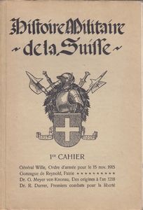 remarques: | premier cahier, histoire militaire de la Suisse publiée sur l'ordre du chef de l'état-major général: le colonel-commandant de corps Sprecher von Bernegg sous la direction du colonel M. Feldmann et du capitaine H.G. Wirz 12 cahiers de 1915 à 1921 avec de nombreuses cartes militaires à la fin de chaque cahier introduction avec un ordre d'armée du général Wille pour le 15 novembre 1915 - 1315-1515, de Morgarten à Marignan - des origines à l'an 1218 - premiers combats de la Suisse primitive pour la liberté |