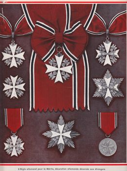 remarques: | deuxième tome, mars 1942 à mi-1943, commentaires >> voir volume 1 les défaites à Tunis et à Stalingrad ne sont naturellement pas commentées à voir p. 14 la présence de Maurice Chevalier annexes - couverture de l'album - l'Aigle allemand pour le Mérite, décoration allemande décernée aux étrangers |