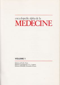 remarques: | collection encyclopédie de la médecine en 8 volumes (1975), les dernières découverte n'y sont naturellement pas mentionnées mais la collection reste intéressante de par les illustrations et les informations de base volume I de A à Ap avec entre autre: abdomen, accouchement, acupuncture, a.d.n., aero-embolisme, âge, alcoolisme, alimentation, allergie, anatomie, anémie, anesthésie, anthropologie, antibiotiques, aorte, apoplexie volume II Ap à Chi entre autre: appendicite, appétit, artères, arthrite, articulations, asthme, astrologie, atavisme, athérosclérose, avortement bactériologie, biologie, boulimie, bronches, brûlures calcification, calculs, cancer, cardiaque (chirurgie), cartilage, cataracte, cécité, cellule, cérébrales, cerveau, cheveux, chirurgie volume III de Chl à Di dont entre autre: cholera, cholestérole, chromosomes, circulation sanguine, climat, coagulation, code génétique, coeur, coma, conscience, contagion, contraception, copulation, coronaires (artères), cosmétiques, crâne, croissance défibrillateur, dégénérescence, démence, dents, dépression, dermatologie, diabète, diarrhée, digestion volume IV Do à His dont entre autre: douleur, drogue eau, éducation, électrocution, embolie, embryologie, endocrinologie, épidémie, epilepsie, estomac, excrétion fibrômes, fièvre, foie, folie, fracture gastroscopie, génétique, genou, gérontologie, greffes, groupes sanguins, gymnastique hémoglobine, hémorragie, hémorroïdes, hérédité, hernie volume V His à Nys dont entre autre: histologie, homéopathie, hygiène, hypertension, hypnose, hystérie ictère, immunité, infarctus, infection, intestin kinésithérapie langue, lèpre, leucémie, lipides, lymphatique (système) main, massage, médecine et société, méningite, métabolisme, microbe, moëlle osseuse, morphine, muscles, myopie nerveux (système), névralgie, névrose, nez, nucléaire (médecine) volume VI O à Pres dont entre autre: obésité, odorat, oedèmes, oeil, optique (nerf), oreille, orthopédie, os, ostéoporose paludisme, pancréas, paralysie, parapsychologie, parkinson, peau, pénicillines, péritonite, peste, pharmacologie, phlébite, pied, plastique (chirurgie), pneumonie, poliomyélite, poumons volume VII Pri à Sig dont entre autre: prophylaxie, prostate, prothèses, psychanalyse, psychiâtrie, psychologie rachitisme, radiations, radiologie, rate, réanimation, régime, rein, relaxation, respiration, rêve, rhumatisme sang, santé, sauna, scarlatine, sciatique (nerf), sclérose, scorbut, seins, sensibilité, sexualité volume VIII Sin à Z dont entre autre: sinus, sommeil, sperme, squelette, stérilité, stress, suicide, sulfamides, surdité, syncope, syphilis tabagisme, tests mentaux, testicules, thermalisme, thrombose, thyroïde (glande), toxicologie, tuberculose, tumeurs ulcères, urologie vaccination, vertèbres, vessie, vie, vitamines, voix, vue yoga, zygote |