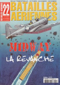 remarques: | cahier no 22 batailles aériennes, octobre-novembre-décembre 2002 la ruée japonaise: de Pearl Harbor à Midway, deuxième partie, Midway la revanche - la bataille de Midway, une incroyable victoire américaine - les prémices avec la bataille de la mer de corail - description de Midway - le raid Doolittle - opérations aéro-navales - l'attaque dévastateur des bombardiers en piqué Douglas Dauntless - 4.6.1942 trois porte-avions japonais (Kaga, Akagi et Soryu) sont coulés en 10 minutes vers 10.00 heures du matin, le dernier (Hiryu) sera éliminé en fin d'après-midi contre la perte du Yorktown, les porte-avions Hornet et Enterprise sortant indemnes de la bataille annexes - couverture du cahier - carte du Pacifique - déroulement de la bataille - les deux atolls de Midway - le porte-avion Yorktown - pont d'envol de l'Enterprise - chasseur Grumman F4F de l'Us Navy - pont d'envol de l'Akagi - le porte-avion uss Midway (1971) |