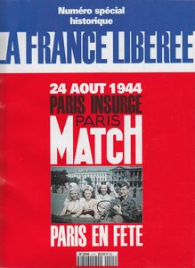 remarques: | numéro spécial historique 24.8.1944, Paris insurgée, Paris en fête a) libération de Paris du 19.8. au 25.8. 1944 beaucoup de photos et de témoignages dont celles de Rol-Tanguy, Jacques Chaban-Delmas, du général Massu et de l'épouse du général Leclerc mais peu de documentation sur l'ordre des évènements à noter: le défilé avec De Gaulle et son discours: Paris outragé, Paris brisé, Paris martyrisé, mais Paris libéré, libéré par lui-même, libéré par son peuple avec le concours des armées de la France, avec l’appui et le concours de la France tout entière: c’est-à-dire de la France qui se bat, c’est-à-dire de la seule France, de la vraie France, de la France éternelle (à noter que De Gaulle ne mentionne pas ses alliés) b) vues du Paris moderne comparées à celles de 1944 c) libération de Marseille du 15 au 28 août 1944 dans le cadre de l'opération Dragoon, arrivée des troupes françaises des généraux Monsabert et de Lattre de Tassigny d) libération de Toulouse, Lyon, Vichy à noter que Montpellier, Toulouse, Limoges, Clermont-Ferrand et Bordeaux seront libérés sans l'intervention des alliés e) la chasse aux collabos >> toujours intéressant surtout de par les photos choc de Paris Match n.b. voir aussi le livre de Choltitz sous le chapitre 2ème guerre mondiale Russie: de Sébastopol à Paris ainsi que le roman de Lapierre: Paris brûle-t-il? |