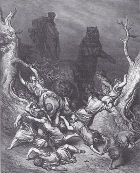 remarques: | la Bible, illustrations de Gustave Doré avec des extraits du Nouveau et de l'Ancien Testament, choisis dans la Bible de Jérusalem n.b. la Bible de Jérusalem est le nom donné à une série de traductions de la Bible élaborées sous la direction de l'École biblique et archéologique française de Jérusalem >> page 205 une histoire controversée: Elisée maudissant les garçons de Béthel, le deuxième livre des rois, chapitre 2.15-24 >> surtout de superbes illustrations Sommaire (les nos réfèrent aux pages avec les meilleures illustrations) A) l'Ancien Testament 1/ la Genèse 13,21,23,45,61 2/ l'Exode 75,87 3/ les Nombres 94 4/ le livre de Josué 103,109 Josué, chef de guerre 5/ le livre des Juges 125, 131,137 6/ le livre de Ruth 149 "a woman of devoted love" qui prit du blé dans le champ de Boaz 7/ le premier livre de Samuel 153,155,165 Samuel = demandé à Dieu, dernier juge, prophète et faiseur de roi 8/ le deuxième livre de Samuel 173 Saüul, David, Goliath 9/ le premier livre des rois 181, 183, 187 Salomon, bâtisseur du temple, les jugements de Salomon 10/ le deuxième livre des rois 205,219 le prophète Elie (qui contrairement à Jesus n'aimaient pas les garçon de Béthel) >> p. 205 11/ le deuxième livre des chroniques 12/ le livre d'Esdras 227 Esdras = prêtre-scribe d'Israël 13/ le livre de Nöhémie 233 14/ le livre de Tobie 235 Tobie, l'ange et le poisson 15/ le livre de Judith 239,241 Judith, la femme qui tua Holopherne 16/ le livre d'Esther 247 17/ le livre de Job 253 Dieu a donné, Dieu a repris (n.b. donner c'est donner, reprendre c'est voler!) 18/ Isaïe 259 Dieu fait périr léviathan, le serpent-marin 19/ Jérémie 263 prophète qui prédit la destruction de Jérusalem ainsi que l'exil des Judéens à Babylone 20/ le livre de Baruch Baruch ben Neria est un disciple et compagnon du prophète Jérémie 21/ Ezechiel prophète durant l'exil à Babylone 22/ Daniel 273,275 les visions de Daniel, Daniel dans la fosse aux lions, Daniel et la prude Suzanne n.b. cet épisode avec Suzanne n'est généralement pas mentionné dans la bible, version synodale et de l'Eglise évangélique 23/ Amos troisième des douze petits prophètes de la bible 24/ Jonas 287 avalé et rejeté par la baleine 25/ Michée 291 le sixième des douze petits prophètes 26/ Zacharie onzième des douze petits prophètes de la bible 27/ premier livre des Maccabées 301,303 avec Mattathias, chef israëlien; Judas chef de guerre et Jonathas grand prêtre 28/ deuxième livre des Maccabées 309,313 - le martyr d'Eleazar un frère de Judas Maccabée qui combattit courageusement contre Antiochus Eupator B) le Nouveau Testament 1/ l'évangile selon Saint Luc 323,331,343,375,381,383 l'annonciation, la nativité, Jesus parmi les docteurs, Jesus à la synagogue, le bon samaritain, le retour de l'enfant prodigue, Lazare et le mauvais riche, Jesus et les disciples d'Emmaüs 2/ l'évangile selon Saint Matthieu 329,365,367,401 les rois mages, la fuite en Egypte, le massacre des innocents, Jean le Baptiste, Jesus marchant sur les eaux, multiplication des pains, le repas pascal, le baiser de Judas 3/ l'évangile selon Saint Jean 341,357,411,423 les noces de Canaa, Marie-Madeleine, Jesus et le samaritain, la flagellation, la crucifixion 4/ l'évangile selon Saint Marc 395 Jesus chassant les marchands du temple, l'obole de la veuve 5/ les actes des apôtres 449,451 l'ascension, la Pentecôte (descente du st-esprit, martyr de Saint Etienne, Saint Paul (Saül) sur le chemin de Damas 6/ l'Apocalypse 467,469 Babylone la maudite en ruines et Jerusalem la sainte, le jugement dernier, la bête, Gog et Magog = chefs impies de païens annexes ces images sont des copies des images originales de l'oeuvre de Gustave Doré sauf Moïse avec les tables de la loi qui est une image originale - couverture du livre - le déluge - Moïse et les tables de la loi - Samson et Dalila - les Benjaminites enlèvent les filles de Silo - David montre la tête de Goliath - Elisée maudit les garçons de Béthel - Dieu fait périr Leviathan (vision Isaïe) - Suzanne au bain - Marie-Madeleine repentante - la crucifixion n.b. la version originale de 1866 en 2 volumes a une valeur d'environ Euros 1500.- Information, les 12 apôtres - Pierre - Jacques (frère de Pierre) - - Jean (frère de Pierre) - Jacques le mineur - Simon le Zélé - Jude - Matthieu - Thomas - - André - Philippe - Barthélémy et Judas l'Iscariote n.b. Luc, Marc, Paul et Barnabé seront aussi considérés plus tard comme apôtres |