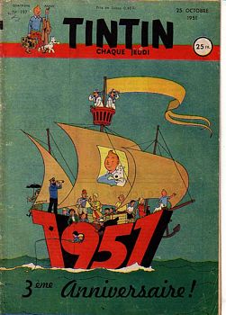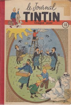 remarques: | reliure journal Tintin France no 10 1951/1952 20 pages, 50% couleur, au prix de fr 25.- 17 numéros par reliure du no 154 (4.10.1951) au no 170 (24.1.1952) couverture avec de légères traces de scotch >> voir photo mais intérieur en parfait état 1/ reprise des séries Conrad le Hardi - les mameluks de Bonaparte - île maudite - le casque tartare - le fantôme espagnol - Monsieur de Bonneval - Barelli à Nusa Pénida - Monsieur Vincent - le mystère de la pyramide - Quick et Flupke n.b. après une interruption du no 160 à 162, le titre de la pyramide devient le mystère de la GRANDE pyramide - no 156 fin de Conrad le Hardi - no 157 fin du roman de Dzidziri - no 158 début du roman le chat de Platine, par Thomas Pariset, illustrations de Trubert - no 159 Monsieur Lambique poar Vandersteen - no 162 fin des mameluks de Bonaparte - no 164 fin du roman de Jean Bart - no 165 numéro spécial, fr 40.-, début du grand cirque par Pierre Clostermann, illustré par Raoul Auger y inclus le jeu de l'oie de Tintin et Milou par Hergé - no 166 continuation du grand cirque, 50% couleur, 2 pages, fin de Monsieur Vincent - no 168 début du pacte de Pashutan par Reding 2/ articles documentaires - no 155 Napoléon à Sainte-Hélène - no 160 André Citroën - nos 168+169 les états Lilliput en Europe: Liechteinstein, Andorre, Vatican, Monace, San Marino 3/ portrait de personnages célèbres - no 161 Abd el Kader 4/ jolies couvertures: - no 154 Monsieur Vincent - no 157 3ème anniversaire par Hergé - no 159 couverture par Bob de Moor - no 160 l'île maudite - no 162 la Saint-Nicolas par Bob de Moor - no 163 Barelli à Nusa Pénida - dès le no 165, les couvertures mentionnent le grand cirque >> toujours de bonne qualité |
