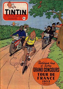| remarques: | reliure journal Tintin France no 16 1953 24 pages, 50% couleur, au prix de fr 30.- 13 numéros par reliure du no 240 (28.5.1953) au no 252 (20.8.1953) >> petites traces de scotch mais sinon reliure en parfait état 1/ reprise des séries Texas Slim - trésor de Beersel - on a marché sur la lune - Cori le moussaillon - le miroir magique - la grande menace - le renard qui louche - Quick et Flupke - no 240 HC l'homme qui tua le diable par Macherot, création du timbre Tintin - no 241 HC qu'est devenu Fawcett? par Weinberg - no 250 fin de Texas Slim - no 251 début du roman-feuilleton: Benito cheval sauvage par Dita Holesch, illustré par Cuvelier - no 252 fin de Cori le moussaillon 2/ articles documentaires - no 240 la voiture VW - no 241 le génie saharien - no 245 Hans Holbein 3/ portrait de personnages célèbres - no 241 Wagner 4/ jolies couvertures - no 241 HC Fawcett par Weinberg - no 243 HC Monsieur Tric par Bob de Moor - no 244 HV Godefroi de Bouillon par Funcken - no 245 le Tour de France par Hergé - no 250 HC sa première ronde par Graton - no 251 HV Waterloo par Funcken - no 252 HC les perles de la reine par Macherot - une reliure bien intéressante avec le début des excellentes histoires vécues (HV) par Funcken |