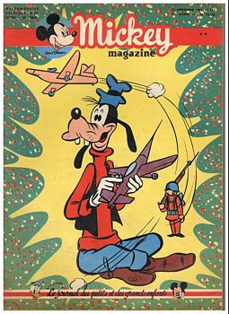 | remarques: | recueil no 5 du no 105 (10.10.1952) au no 130 (3.4.1953), hebdomadaire, 20 pages, fr belge 6.- 26 numéros par reliure séries existantes - petit Tuut - l'homme de demain revient - le trèfle d'or - Mickey contre Pete le Noir - Mickey et le rétrotéléviseur - les trois petits cochons - 10 hommes perdus (feuilleton) - no 108 début de Donald, - charmeur de serpents ***, - les avatars de Charlie, - RC Eloi et grand-mère Duck, - début de la galerie des portraits 1952 - no 115 portrait de Minnie - no 116 Mickey à travers les Ages (avec l'oncle Bomby) ***, Donald et le roi d'or de la Guyane ***, - portrait de Mickey - no 117 numéro spécial, la famille Duck, portrait des trois neveux: Jojo, Loulou, Victor - début de l'oeil de rubis d'Homar-Guy-Am - no 118 portrait de Pan-Pan - no 119 portrait de Daisy - no 120 portrait de Donald, - les réfugiés de l'Athabasca (feuilleton) - la montagne mangeuse d'hommes - no 121 début de Robin des Bois (en page centrale) - no 122 portrait de Jeannot Lapin - no 123 portrait de Pinocchio, - RC avec Giro Giroskop, l'inventeur cinglé - no 124 portrait de Hiawatha, le petit indien - no 125 début du sablier magique *** - no 126 début du nain d'Irlande, - portrait de Zeke Loup - no 127 la voix qui s'éteint + portrait de Pluto - no 128 portrait de José Carioca - no 129 portrait de Eega Beeva - no 130 portrait de Panchito *** = les meilleures séries n.b. pour les divers portraits, vois aussi la brochure galerie des portraits >> un recueil tout à fait intéressant |