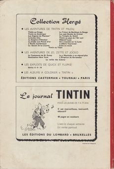 remarques: | recueil no 50 journal Tintin belge, 15ème année du no 40 (6.10.1960) au no 49 (8.12.1960), 50% couleur, 10 nos par reliure, 48 pages, fr. belge 10.- séries au no 40: - Jari et le plan Z par Reding - Rock Derby, les voleurs de poupées par Greg - flamme d'argent par Cuvelier - le piège diaboloique par Jacobs - Bob Binn contre XYZ par Aidans - Michel Vaillant, route de nuit par Graton - la famille Trotinet: pâte à plans par Anjo - Oumpah-pah, mission secrète par Uderzo - Spaghetti et la peintoure à l'houile - l'ouragan de feu par Martin - histoire du monde (visions d'Orient) par Schoonjans et Funcken - Dan Cooper, coup d'audace par Weinberg - histoire vécue: Diogène par Funcken - Strapontin et le tigre vert by Berck+Goscinny - Modeste et Pompon par Franquin nouvelles séries au no 49: - chevalier blanc, échec au roi par Funcken - Clifton et les espions par Macherot - Rock Derby, panique au paradis par Greg - Hassan et Kaddour, le voeu magique par Laudy - Michel Vaillant, le 13 est au départ par Graton - indésirable Désiré par Mitteï n.b. au no 48 un supplément publicitaire: sheriff U.S. pour le scotch Scotty >> un recueil avec des séries très honorables, mais sans Tintin et Milou - les recueils du Journal Tintin belge ne sont pas collectionnés ici, celui-ci à titre d'exemplaire représentatif |