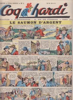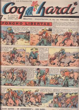 remarques: | album Coq Hardi no 2, 3ème année, Nouvelle Série no 28 (août 1946) au no 41 (2.1.1947) curieusement cet album contient 2x le numéro 28 mais tous les autres numéros sont bien complets et dès le numéro 40, la qualité du papier s'améliore considérablement - suite de guerre à la terre toujours aussi intéressant et bien coloré - les 3 mousquetaires du maquis par Marijac - le saumon d'argent qui se termine au no38 - capitaine fantôme par Cazanave et - chasse au corsaire qui se termine au no 31 - Poncho Libertas par Le Rallic (partiellement en couleur) et - Lariflette, maître d'école par Laborne, - le prof. Tribacil contre Herr Doktor Klorat par Erik >> un album tout-à-fait intéressant et toujours avec l'excellente bande de guerre à la terre |