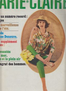 remarques: | magazine Marie-Claire, mai 1963, un numéro record de 358 pages divers articles dont un plutôt intéressant coupables par Colette, les grands procès: la bande à Bonnot, Landru, Violette Nozières, Stavisky, Marie Becker, Oum-el-Hassen et Weidmann Information Marie Claire est un magazine féminin mensuel français créé en 1937 et édité par le groupe Marie Claire, le titre a fait l'objet d'adaptation sous licence aux États-Unis et au Royaume-Uni (en anglais) Marie Claire est créé par Jean Prouvost et Marcelle Auclair en 1937 sous forme d'hebdomadaire, le nom du magazine pourrait venir du roman Marie-Claire de Marguerite Audoux, après la défaite française de 1940, la parution du magazine, comme de la plupart des titres de presse français, est suspendue en 1942 (entre février 1940 et mai 1941, la rédaction de la revue passe à Lyon, les numéros ont 16 pages, avec une parution tous les 10 jours jusqu'en mai 1944, numéro 311), le magazine ne réapparaît alors qu'en 1954 sous forme de mensuel, après le départ en retraite de Jean Prouvost en 1976, sa petite-fille Évelyne prend la direction du titre, puis cède sa place en 2004 à son propre fils Arnaud de Contades. |