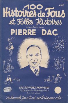 remarques: | petit fascicule avec 100 histoires de fous et folles histoires racontées par Pierre Dac aux éditions Jean Picot les recueils Jean Picot ont le rire pour écho mais n.b. pas toujours le fou-rire! |