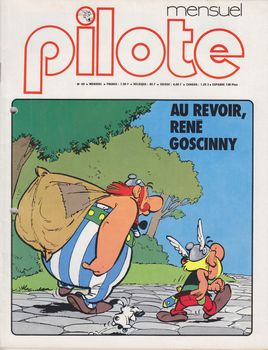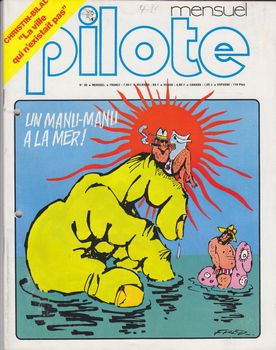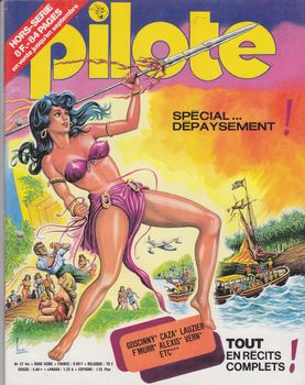 remarques: | Pilote devient mensuel 16 fascicules du no 37 (juin 1977) au no 50 juillet 1978 mixte couleur et N&B, 84 pages, au prix de fr 7.50 avec comme principales bandes: - scènes de la vie de banlieu (Caza) - tranche de vie (Lauzier) - Philémon, la mémémoire (Fred), puis le chat à neuf queues - Cellulite, les bâtisseurs de cathédrales (Bretécher) - le rendez-vous de Sevenoaks (Floch+Rivière) - le génie des alpages (F'Murr) - la macumba du gringo (Pratt) - Dracurella, la romance avortée (Ribera) - Axle Munshine, l'alchimiste suprême (Ribera) - la ville qui n'existait pas (Bilal) puis la foire aux immortels - Jonathan Cartland, le trésor de la femme-araignée (Blanc-Dumont) - Valerian et Laureline, les héros de l'équinoxe (Mezières) - Mad, Hollywood Saga (Don Martin) - le sergent Laterreur (Touïs) - les innocents d'El Oro (Clavé) - Al Crane (Alexis) - l'enfant Manu-Manu (Fred) - les grandes gueules deux numéros spéciaux: - no 37bis spécial dépaysement, plusieurs histoires complètes par Lauzier, , Porco Balese par F'Murr, Solé, Gotzinger, Caza, Linus, Alexis et Fred - no 43 éditorial de Guy Vidal sur la mort de Goscinny, le 5 novembre 1977 qui avise qu'un numéro spécial sera édité plus tard mais entretemps, la rédaction de Pilote est dans le noir et pleure - no 47 bis spécial angoisse avec plusieurs histoires complètes avec: F'Murr, Caza, Baudoin, Toppi, Got, Touïs, Vern et Marol >>> les grands auteurs ont été remplacés par de nouveaux, toujours encore intéressant mais la publicité prend de plus en plus de place et le déclin s'amorçe lentement n.b. ces fascicules ont été troués pour classement dans classeur, mais ces petits trous n'empiètent pratiquement pas sur les illustrations, à part cela tous en TBE annexes - couvertures du journal Pilote avec au numéro 50 la grande gueule de Jane Birkin |