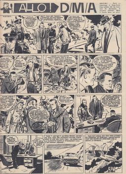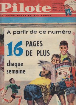 remarques: | trois numéros isolés de Pilote, le grand magazine des jeunes (sous-titré le magazine des jeunes de l'an 2000 au no 134 mais c'est le début des Pilote grand format 24x32 cm mais moins grand que les super formats précédents 26x36 cm, toutefois avec 16 pages de plus, 48 pages, passera à 52 pages un peu plus tard nos 133 du 10.5.1962 au no 135 du 24.5.1962 avec - Belloy, chevalier sans armure (Uderzo+Charlier) - les divagations de M. Sait-Tout (Martial+Goscinny) - Tanguy et Laverdure, l'escadrille des cigognes (Uderzo+Charlier) - P'tit Pat (Dagues+Forlani) - Jeff Arnold, terreur à Pecos (Humphris+Chilton) - Guy Lebleu, allo DMA, 1er épisode (Poïvet+Charlier), épisode inédit, non publié en album qui finit au no 134 - Barbe-Rouge, le démon des Caraïbes (Hubinon+Charlier) - Astérix le gladiateur (Uderzo+Goscinny) n.b. il y aura un 2ème épisode de Allo DMA avec Guy Lebleu (nos 139 du 21.6.1962 au no 239 du 21.5.1964, cette fois édité en album sous le titre "le rayon de la mort" (Glénat 1976) mais uniquement en N&B alors que les bandes de Pilote sont en couleur et les Pilotorama: - no 133, le croiseur anti-aérien Colbert - no 134, 'offensive sur Pearl Harbor (1941) - no 135, les pétroliers >> commencement d'une période qui deviendra très intéressante annexes - couvertures des nos 133 et 135 - dernière planche allo DMA au no 134 |