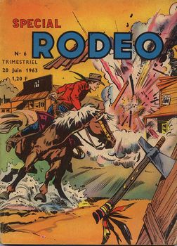 remarques: | special Rodeo, 185 numéros du 4-1962 au 12-2003, (voir aussi Rodeo no 43) numéro 6 du 20.6.1963 >> seuls les numéros 6 et 14 sont collectionnés ici à titre d'exemplaires représentatifs de la série - Johnny Bourask, le mystère de l'invincible (aventure en Nouvelle Angleterre, genre Davy Crockett, parue d'abord dans Flambo puis eut son propre fascicule, appelé Bourask, 32 numéros) - Tex le ranger, le mystère du ranch double T >> une série sans grande prétention d'où la côte peu élevé des fascicules, Johnny Bourask est d'une qualité moyenne et la bande de Tex Willer est une reprise de celle parue dans Rodeo annexes - couverture du no 6 - couverture du no 1 de Rodeo Spécial |