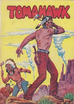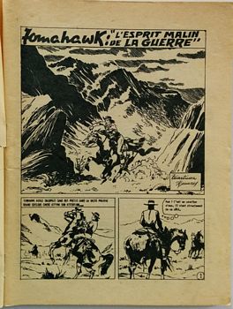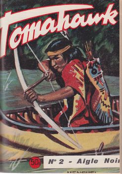 remarques: | Société d'édition et d'imprimerie du Puits-Pelu, éditions Jacquier + Cie, Lyon cette société a surtout édité de la littérature populaire et quelque bande dessinée entre 1944 et 1960 n.b. dans le parler lyonnais, le nom puits pelu désigne soit un capharnaüm, soit un soûlard assez difficile de s'y retrouver entre tous les intitulés qui changent au cours des années au sein d'une même collection; des ouvrages avec l'intitulé: "série" ou "collection", des séries avec juste un titre, des "revues" contenant un titre, des nouvelles et des jeux, des séries commençant en espionnage et passant en policier ou mélangeant les deux parmi plusieurs éditions, Puispelu a publié en format moyen: - Johnny Texas, série western, 53 numéros de 1956 à 1960 - l'An 2000, une série d'anticipation, 12 numéros de 1953 à 1954 Tomahawk est le seul PF de cet éditeur, 10 numéros parus de 1959 à 1960, le titre retenu de cette revue provient de la série principale: le peau-rouge appelé Tomahawk Agile, dont l'auteur (Pedro Martinez-Henares) est bien connu des fans d'Impéria, en fait, Tomahawk a été organisée autour de cinq séries principales dans ses 7 premiers numéros pour tourner ensuite en eau de boudin et cesser au n° 10, sans notification d'ailleurs curieusement, le titre 'Indio' a été attribué aux épisodes des nos 4 à 7 sans raison identifiable reliure no 1 avec les nos 1 à 5 y compris les couvertures des fascicules mensuel, 13x18 cm, 64 pages, N&B, au prix de 50.- fr numéro 1, 4-1959 avec - l'indien Tomahawk Agile, nuage rouge signé par Claude Francoy (inconnu), le dessinateur étant comme mentionné plus haut: Pedro Martinez-Henares (également peu connu) - Mercer Mc Alwin de la police montée canadienne - Raoul et Marcel, aventures policières de deux garçons, genre Raoul et Gaston en Europe - François Bellac, le mousquetaire numéro 2, 5-1959 avec - Tomahawk Agile, aigle noir - Jimmy Colt - Mercer Mc Alwin - Raoul et Marcel - François Bellac, la rançon du comte de St-Ange numéro 3, 6-1959 avec - Tomahawk Agile, l'esprit malin de la guerre - Mercer Mc Alwin, le grand désert blanc - Raoul et Marcel - François Bellac, au service du roi - Jimmy Colt numéro 4, 7-1959 avec - Indio, envoyé spécial n.b. Indio remplace curieusement Tomahawk Agile - Jimmy Colt, le piège de glace - Mercer Mc Alwin, une ombre dans la nuit - Raoul et Marcel - François Bellac, le messager numéro 5, 8-1959 avec - Indio, le petit fugitif - Jimmy Colt, le trésor du pirate - Mercer Mc Alwin, Jack le "sonné" - Raoul et Marcel - François Bellac, mission particulière >>> de courts récits, mal dessinés, mal imprimés et sans grand intérêt annexes - couverture de la reliure - couverture du no 1 - une planche de Tomahawk Agile - couverture du no 2 |